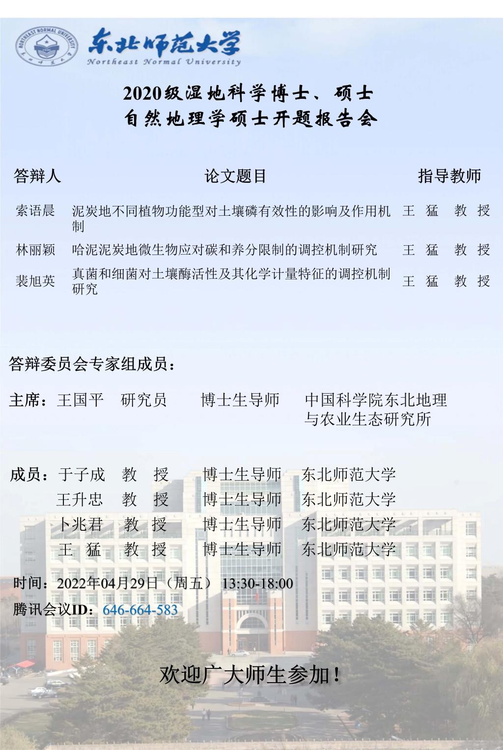 【硕博开题】2020级湿地科学博士、硕士、自然地理学硕士开题报告会