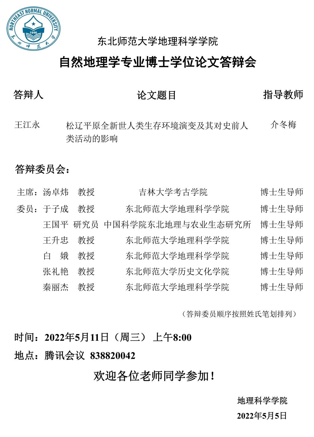 【硕博答辩】自然地理学专业博士学位论文答辩会