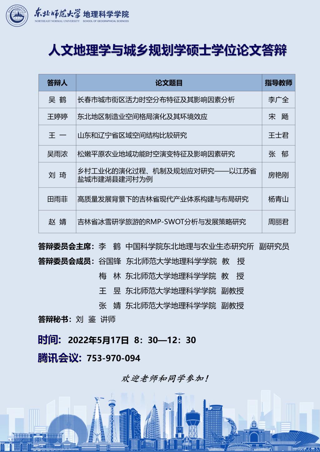【硕博答辩】人文地理学与城乡规划学硕士学位论文答辩Ⅱ