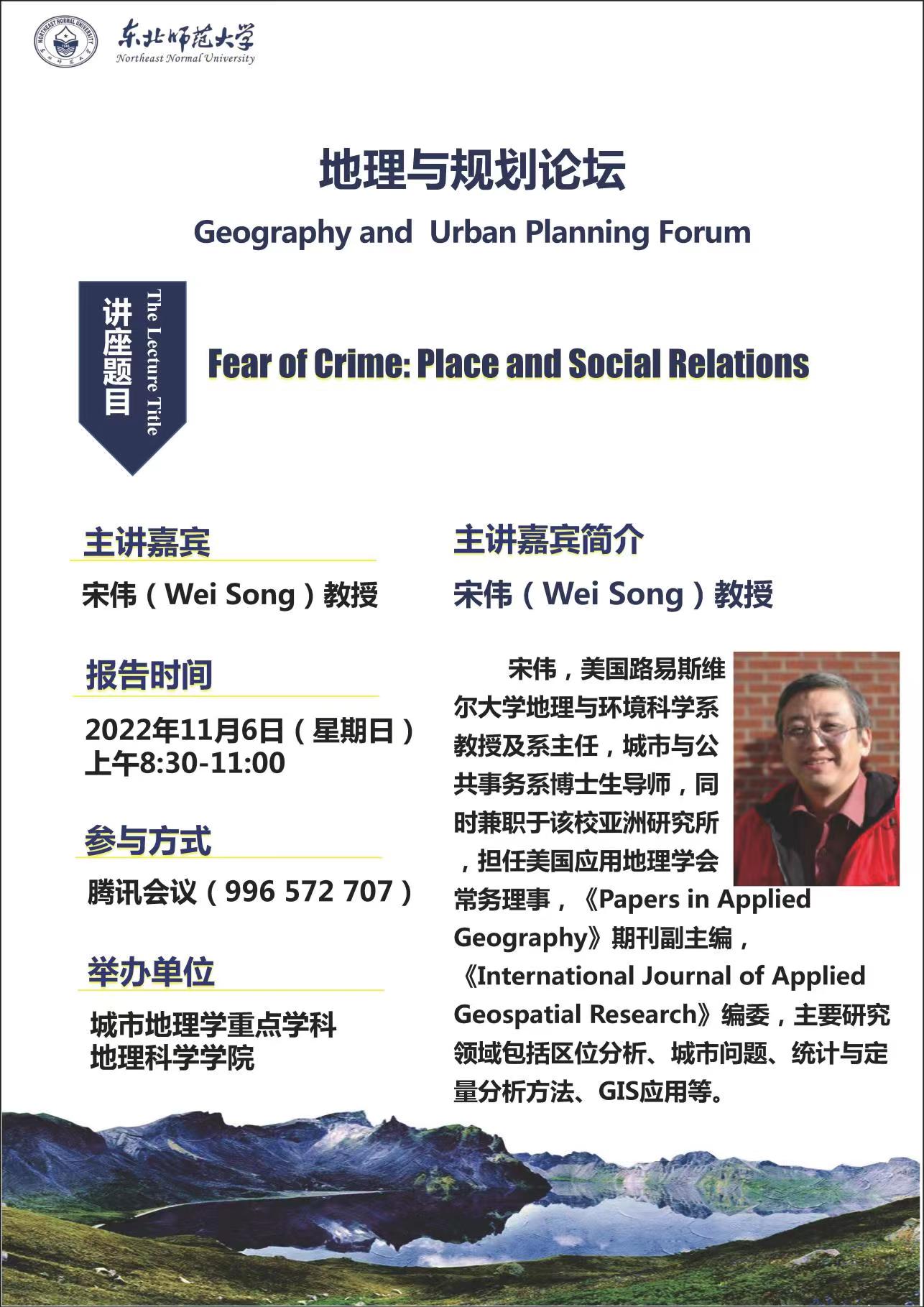 【地理与规划论坛】宋伟:Fear of Crime:Place and Social Relations