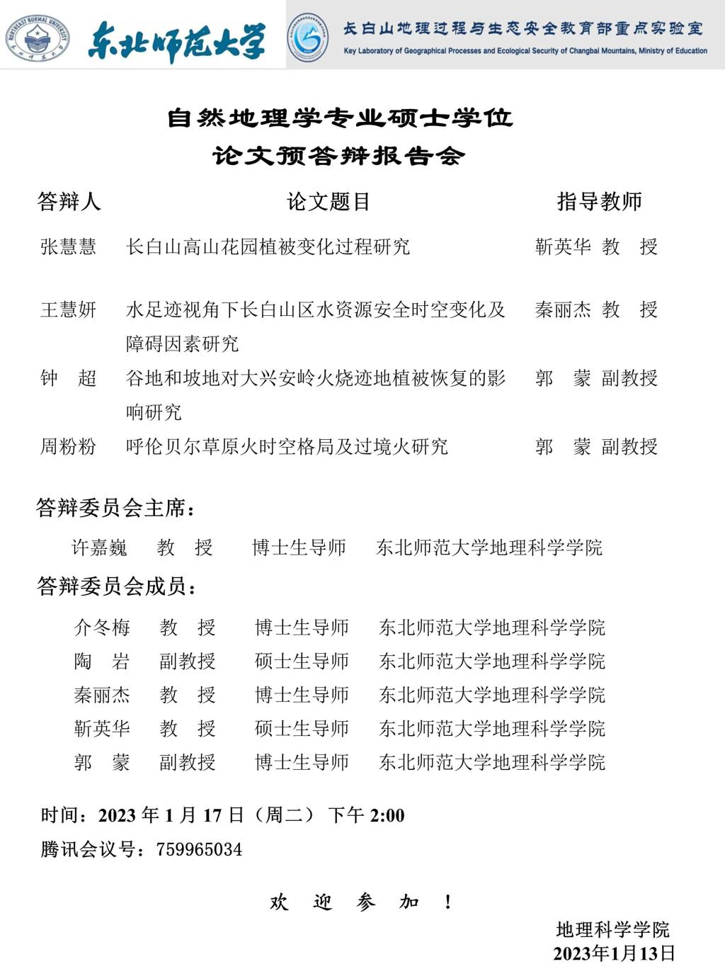 【硕博答辩】自然地理学专业硕士学位论文预答辩