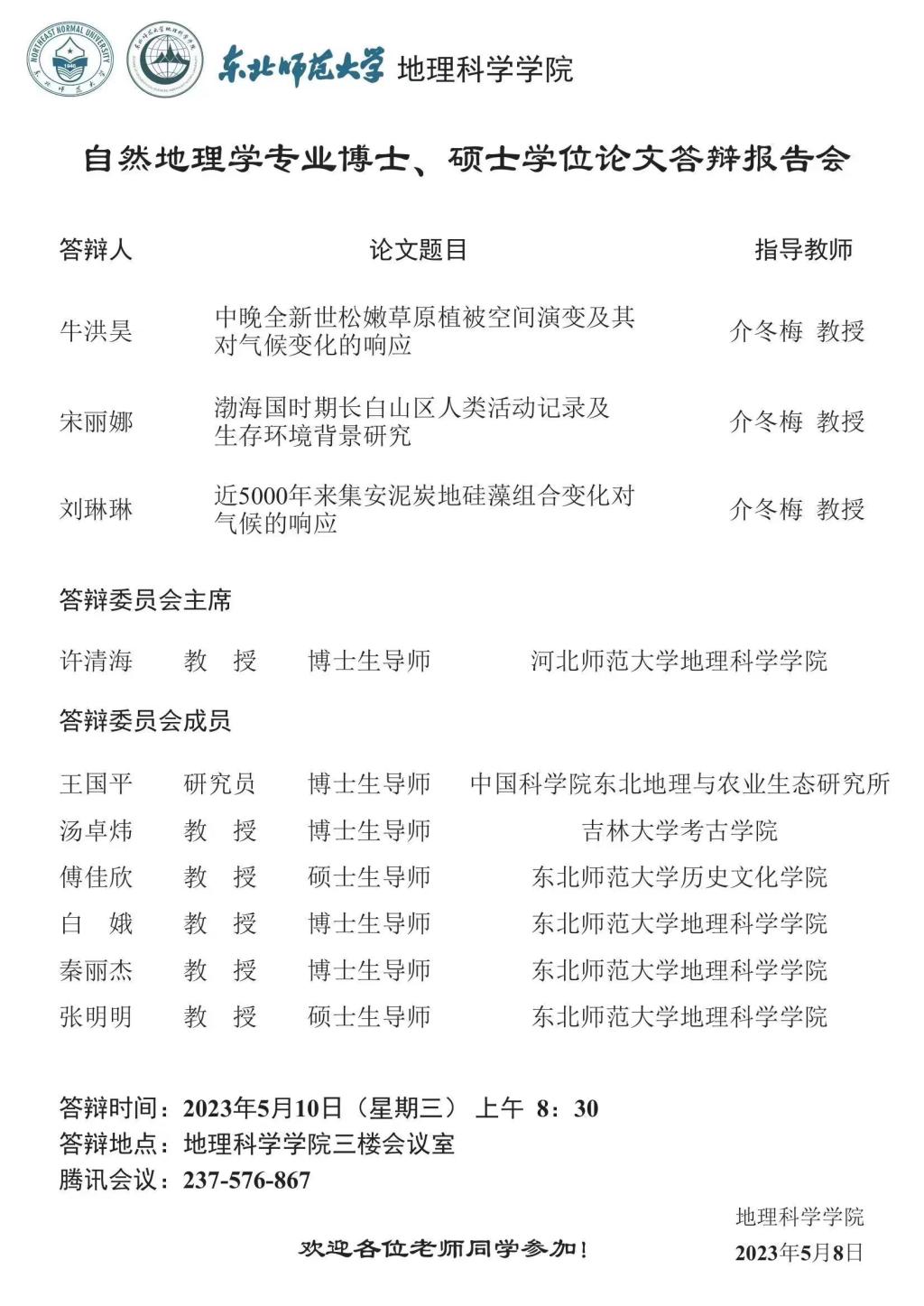 【硕博答辩】自然地理学专业博士、硕士学位论文答辩
