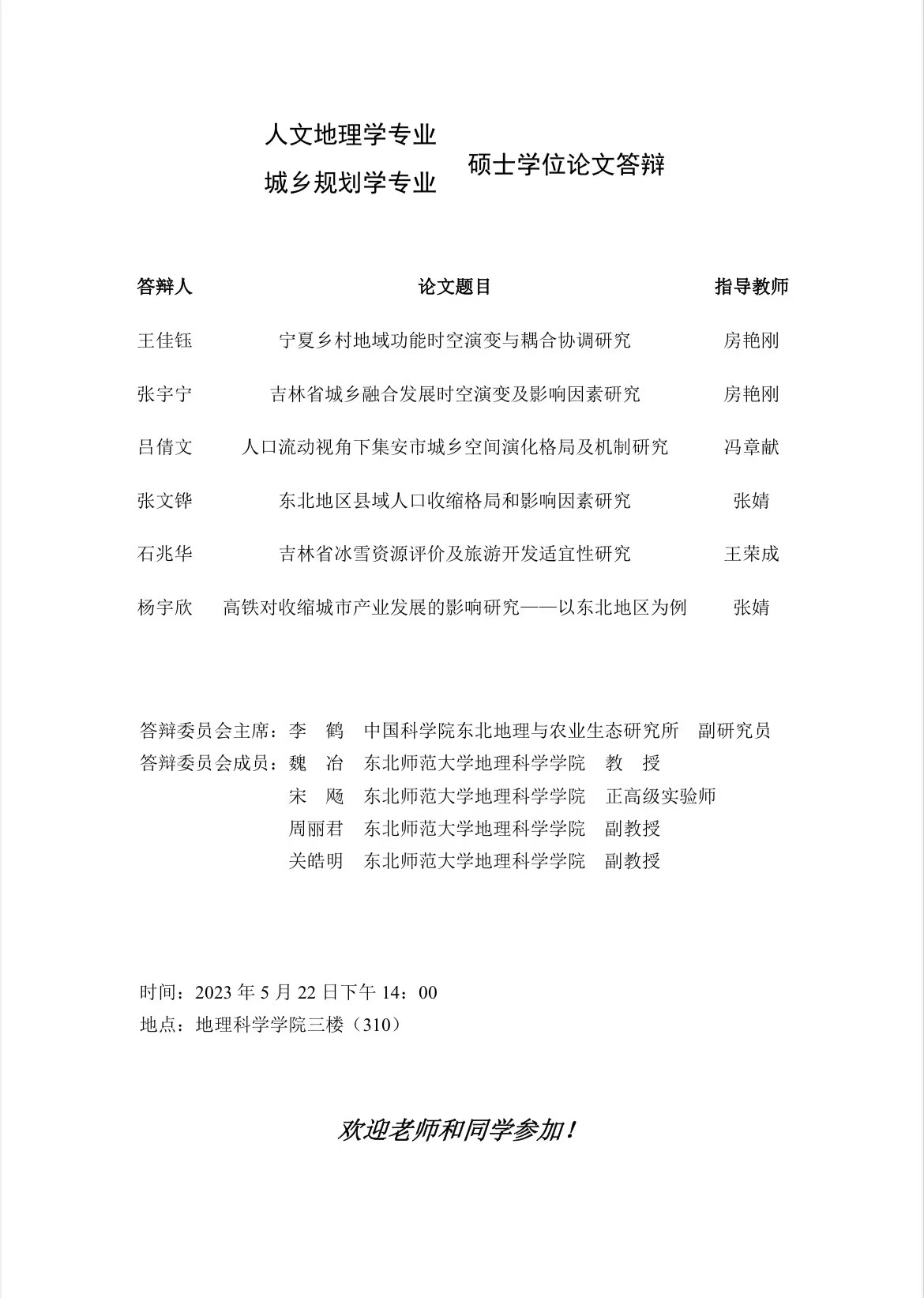 【硕博答辩】人文地理学专业、城乡规划学专业硕士学位论文答辩