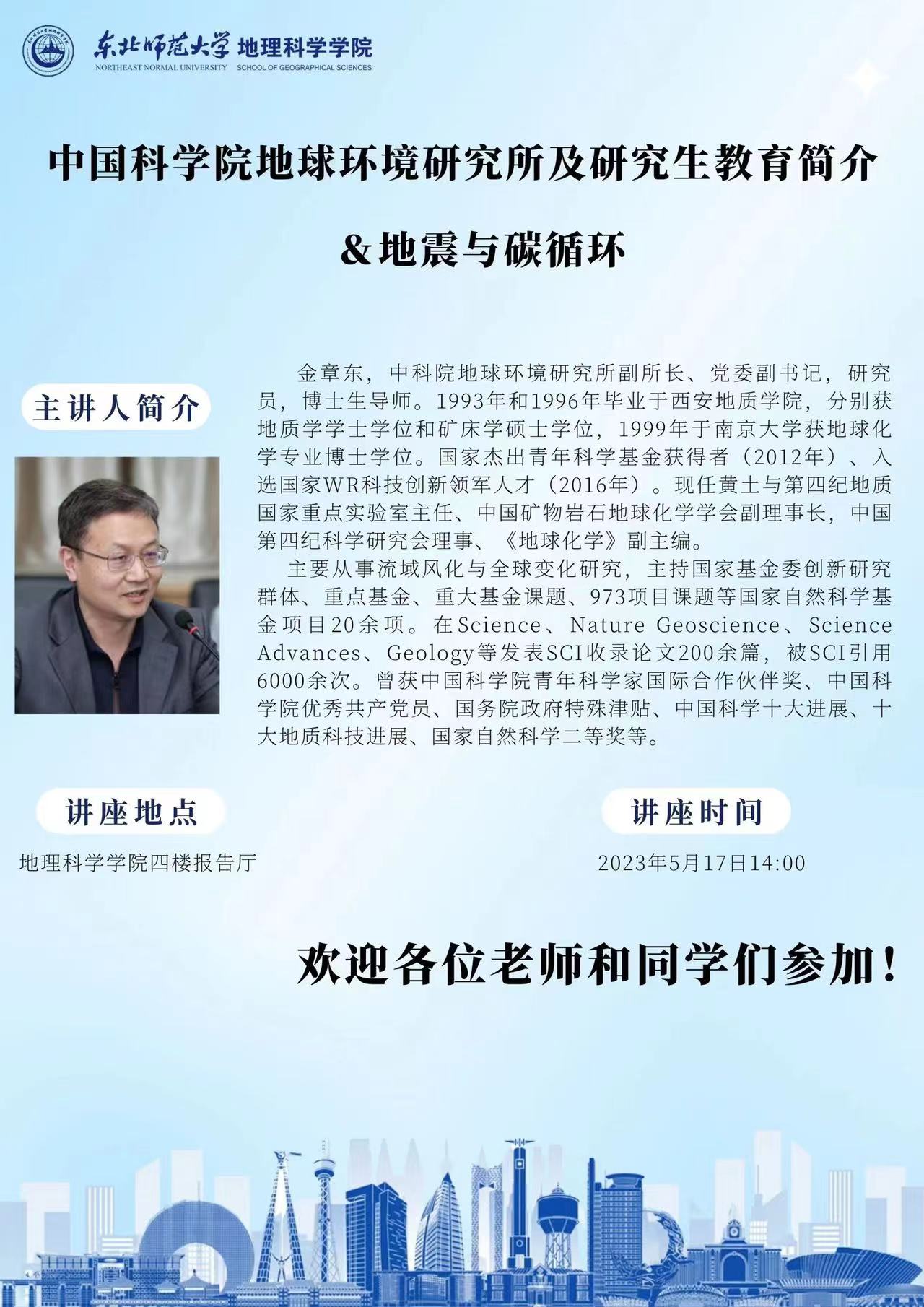 【学术报告】金章东:中国科学院地球环境研究所及研究生教育简介&地震与碳循环