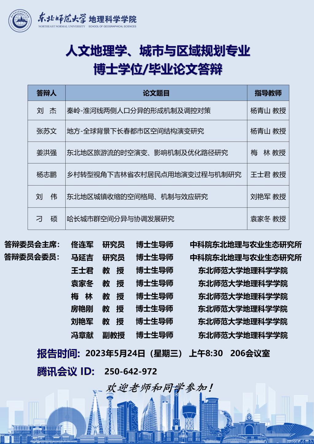 【硕博答辩】人文地理学、城市与区域规划专业博士学位/毕业论文答辩