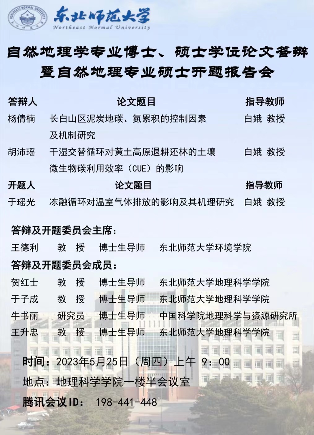 【硕博开题、答辩】自然地理学专业博士、硕士学位论文答辩暨自然地理学专业硕士开题