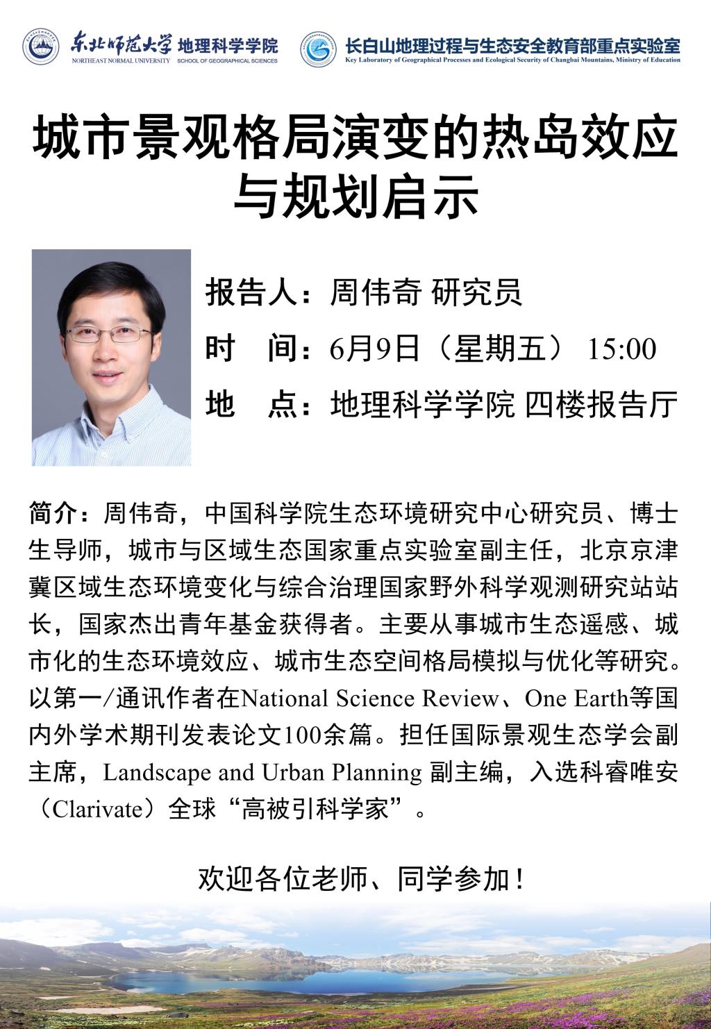 【学术报告】周伟奇:城市景观格局演变的热岛效应与规划启示