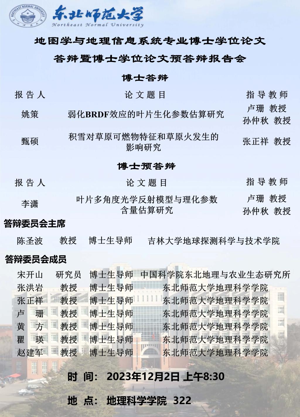 【硕博答辩】地图学与地理信息系统专业博士学位论文答辩暨博士学位论文预答辩报告会