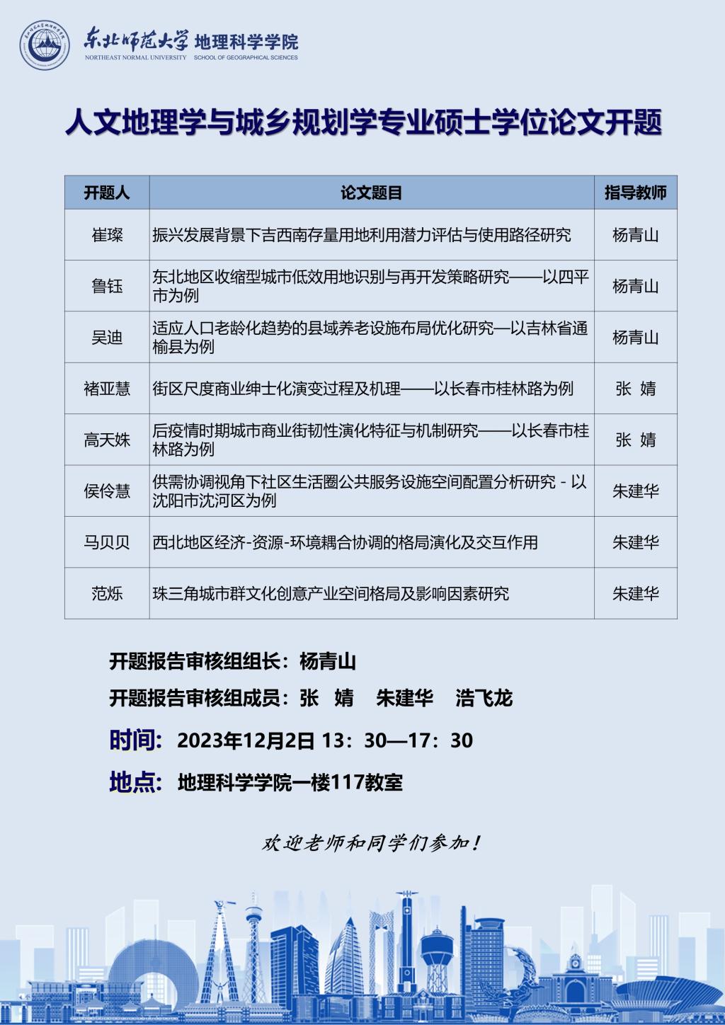【硕博开题】人文地理学与城乡规划学专业硕士学位论文开题