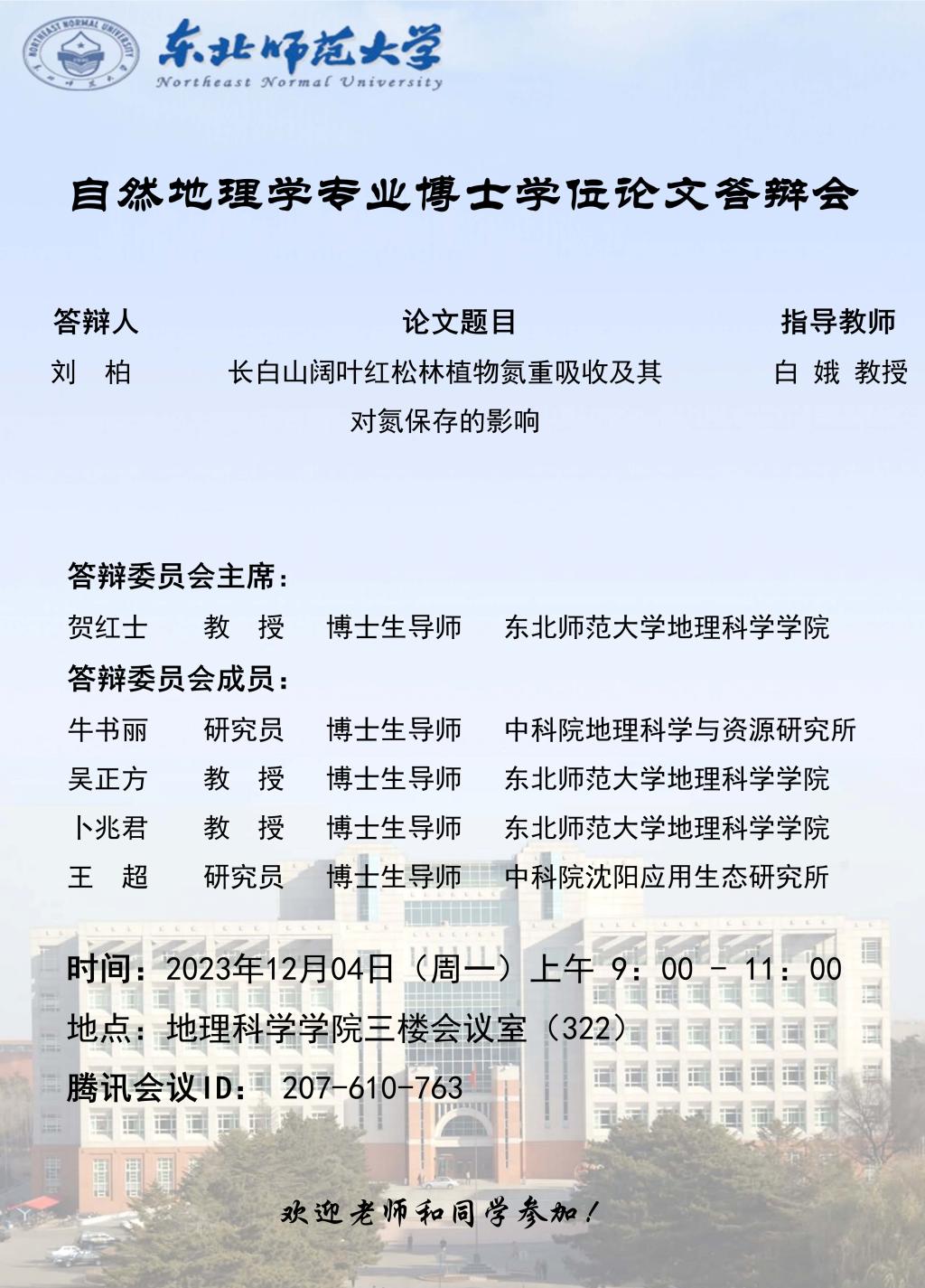 【硕博答辩】自然地理学专业博士学位论文答辩会