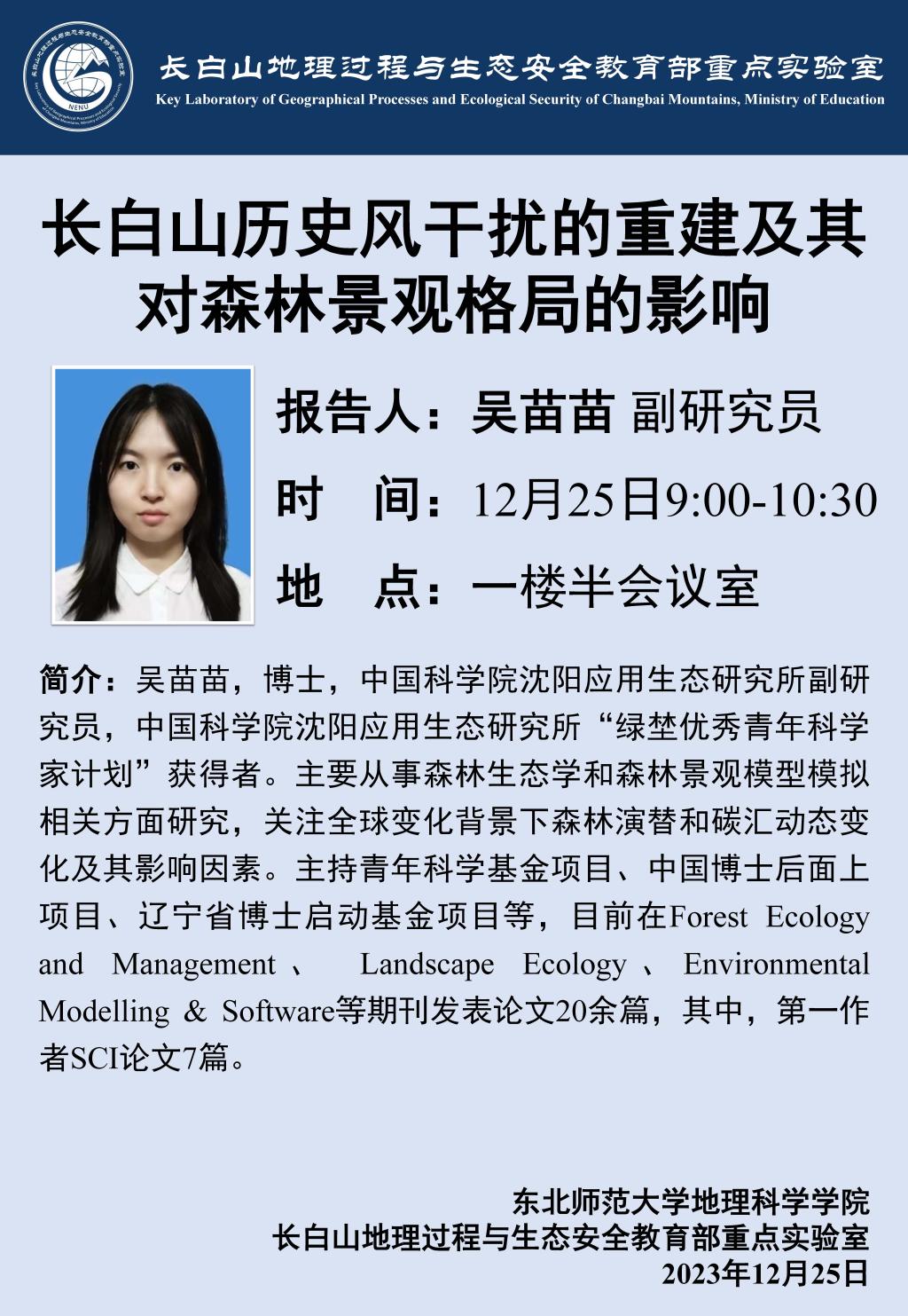【学术报告】吴苗苗:长白山历史风干扰的重建及其对森林景观格局的影响