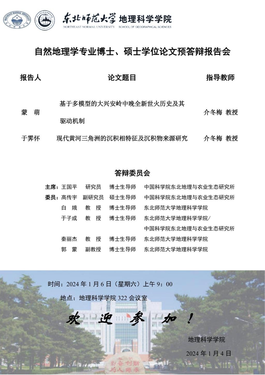 【硕博答辩】自然地理学专业博士、硕士学位论文预答辩报告会