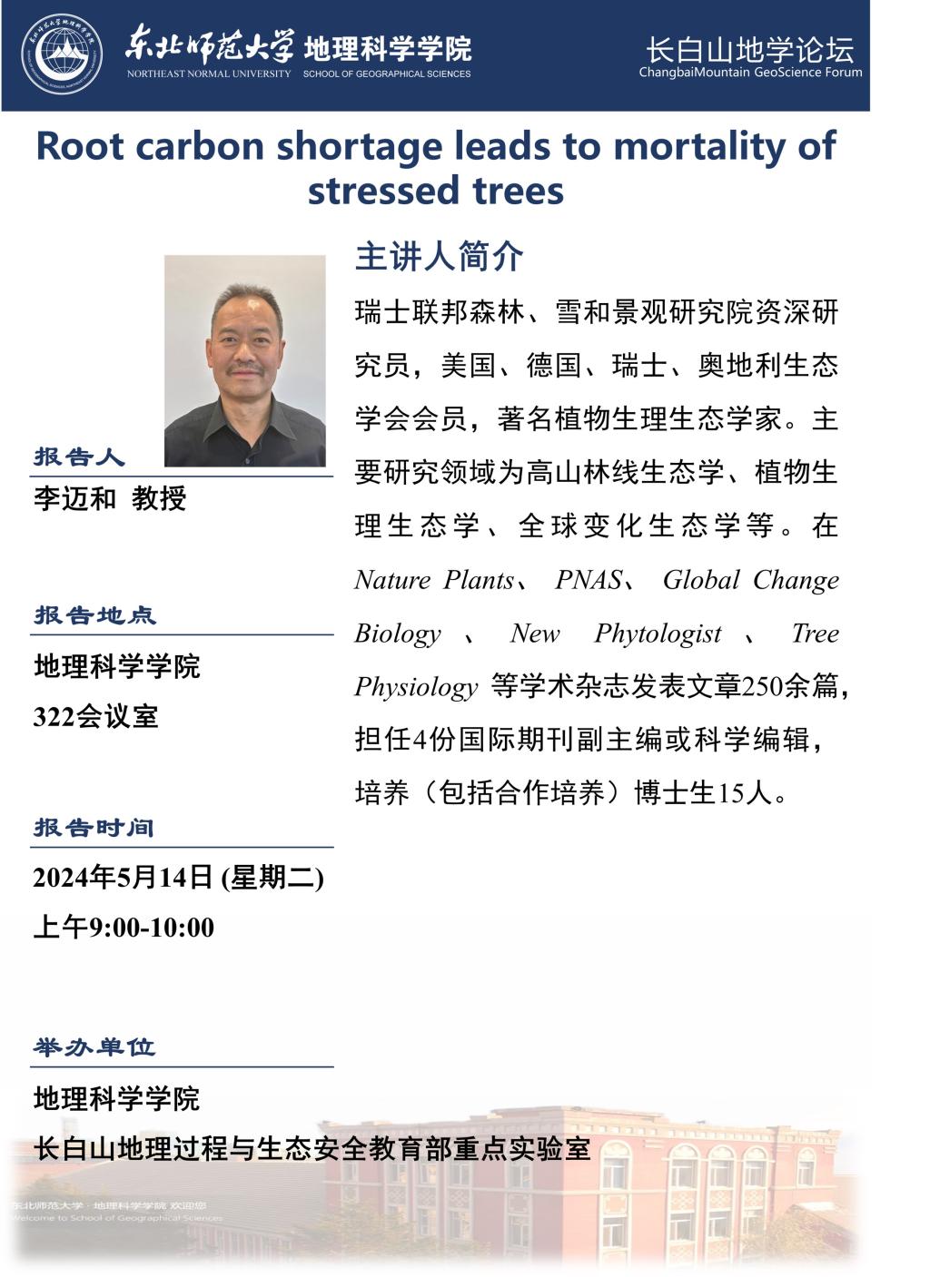 【长白山地学论坛(第3期)】李迈和:Root carbon shortage leads to mortality of stressed trees