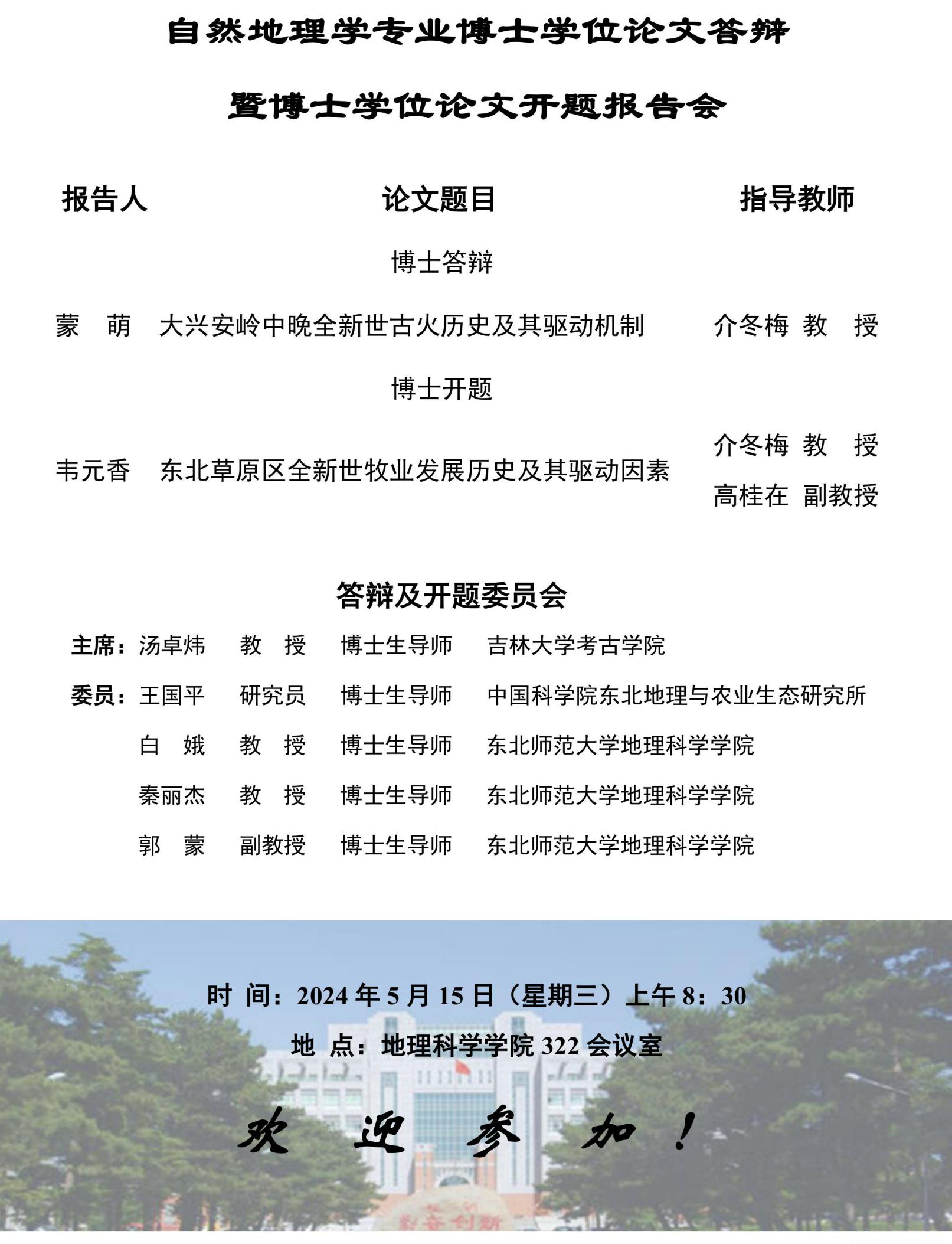 【硕博答辩】自然地理学专业博士学位论文答辩暨博士学位论文开题报告会