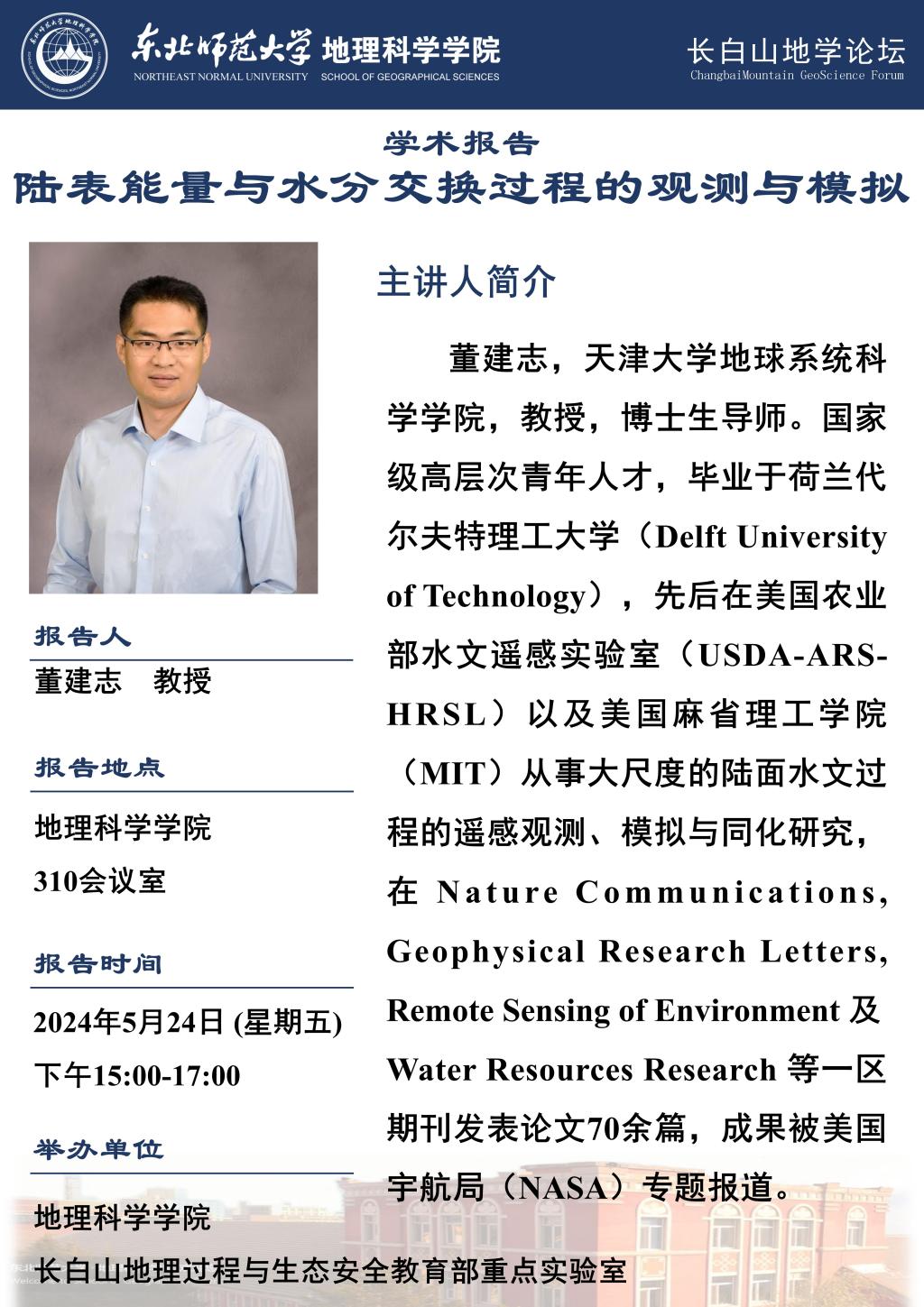 【长白山地学论坛(第4期)】董建志:陆表能量与水分交换过程的观测与模拟