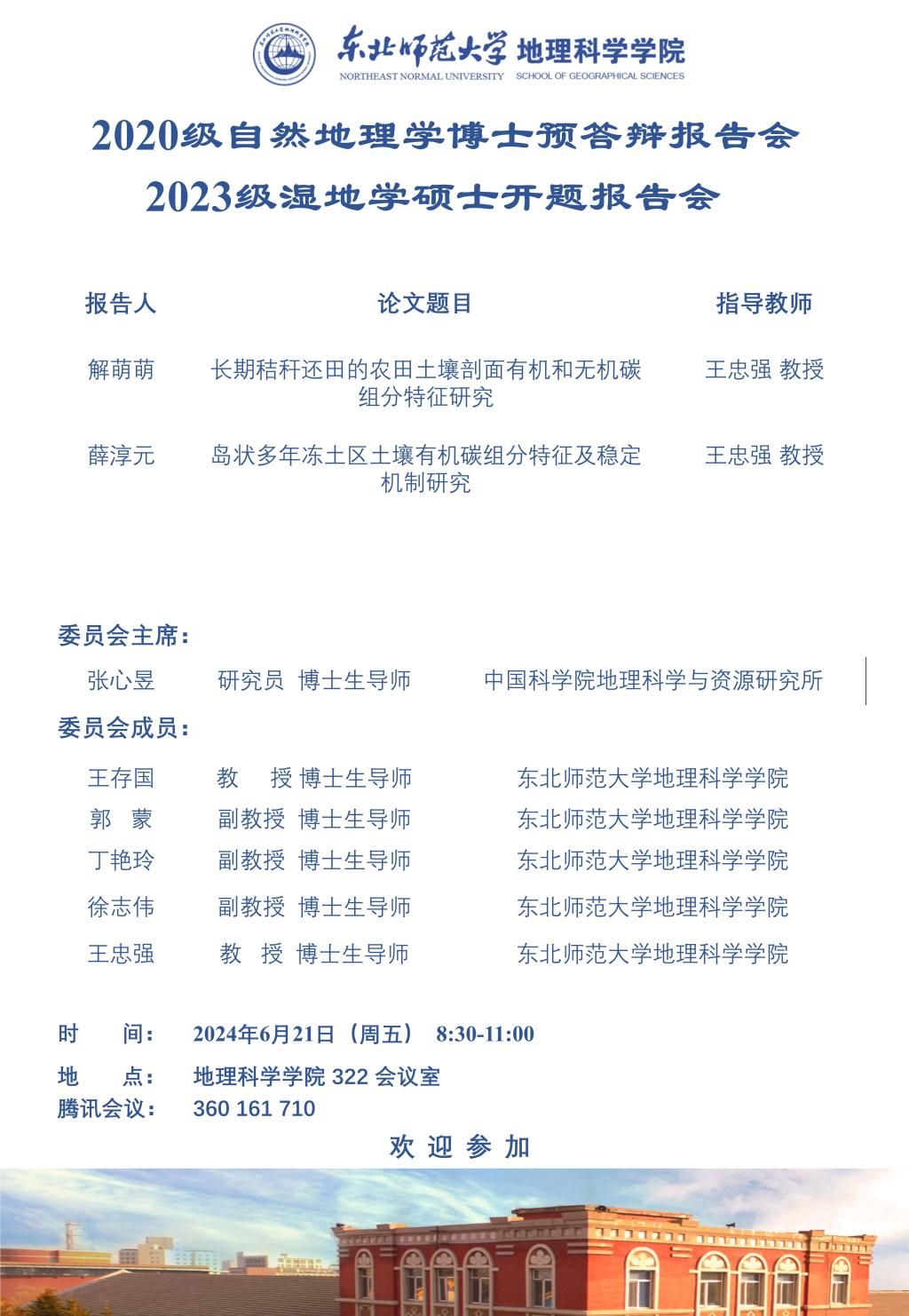 2020级自然地理学博士预答辩报告会、2023级湿地学硕士开题报告会
