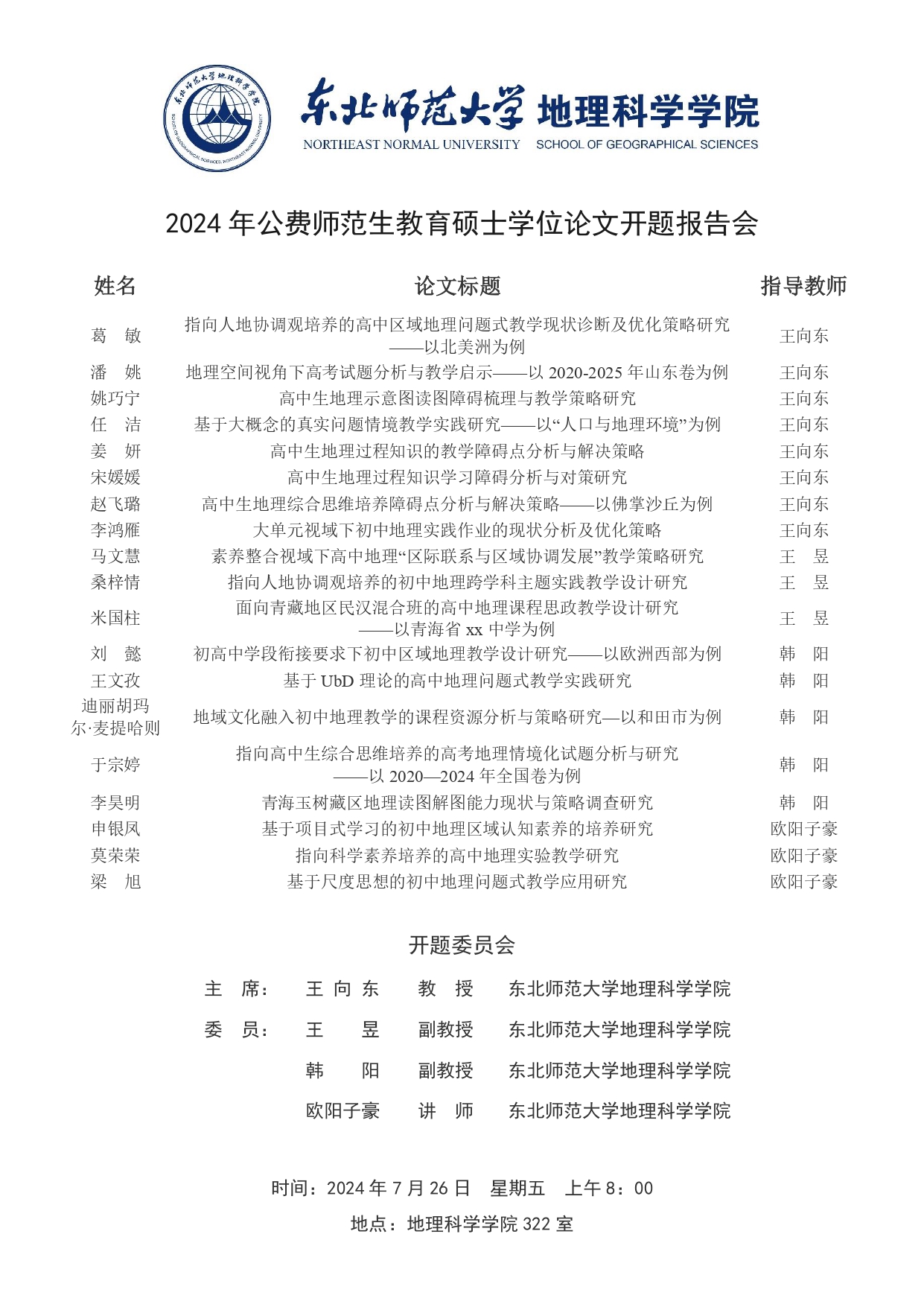 【硕博开题】2024年公费师范生教育硕士学位论文开题报告会