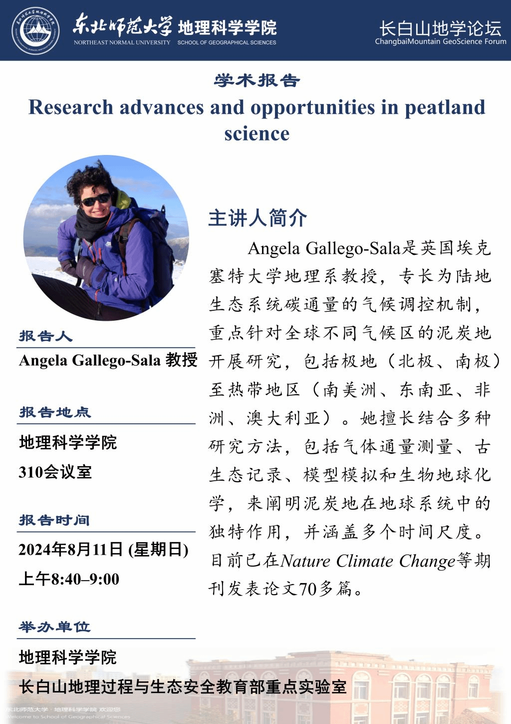 【长白山地学论坛(第八期)】 Angela Gallego-Sala :Research advances and opportunities in peatland science