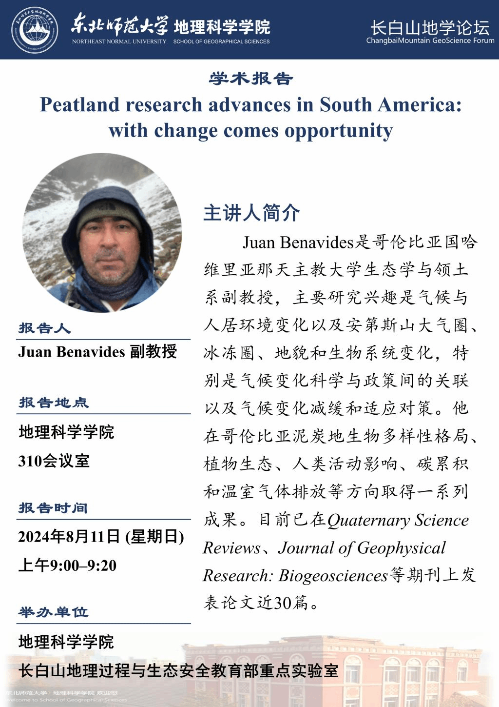 【长白山地学论坛(第八期)】Juan Benavides :Peatland research advances in South America: with change comes opportunity