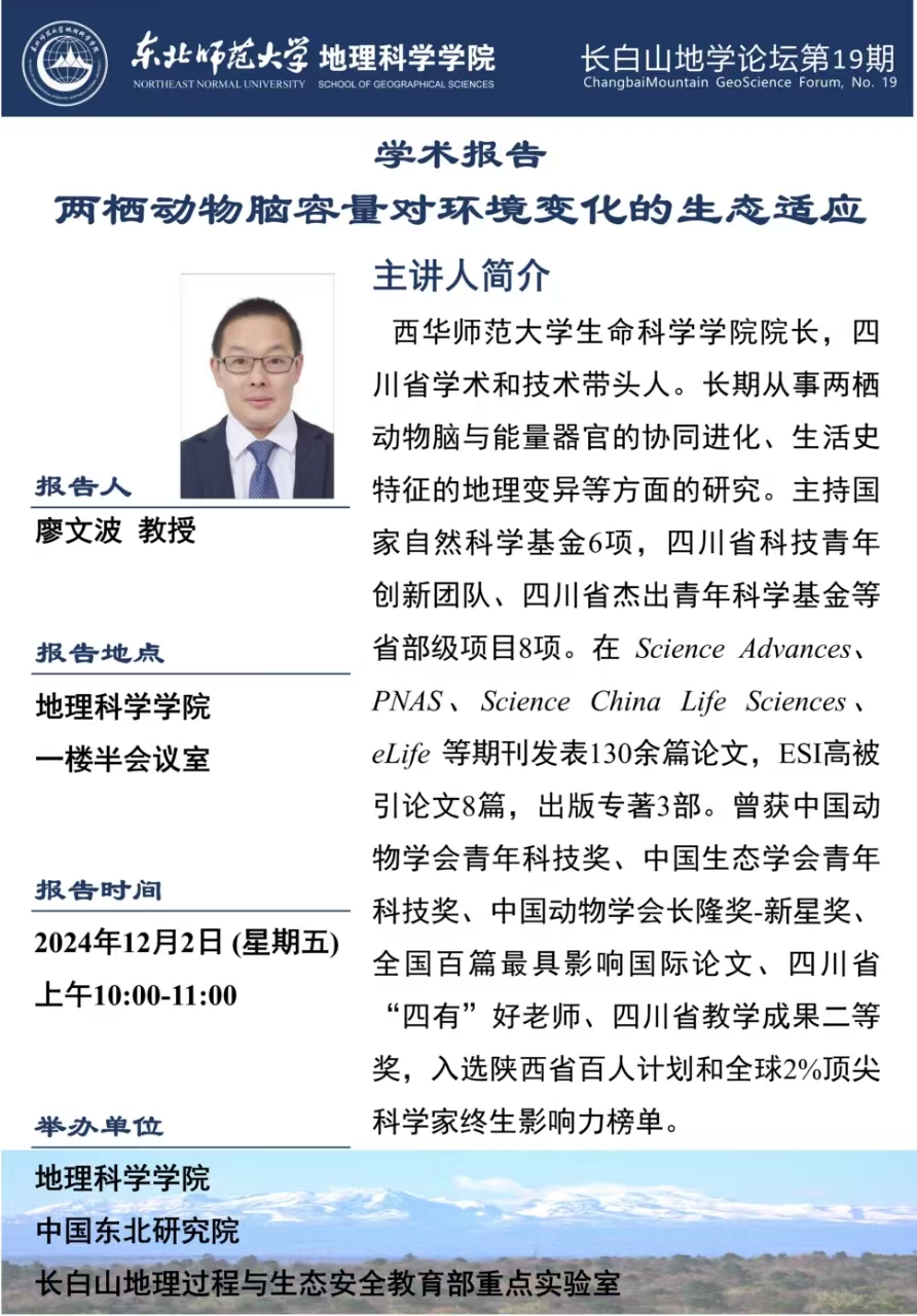 【长白山地学论坛(第十九期)】廖文波:两栖动物脑容量对环境变化的生态适应