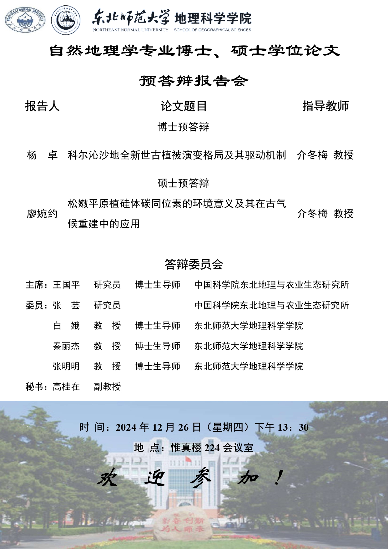 【硕博答辩】自然地理学专业博士、硕士学位论文预答辩报告会