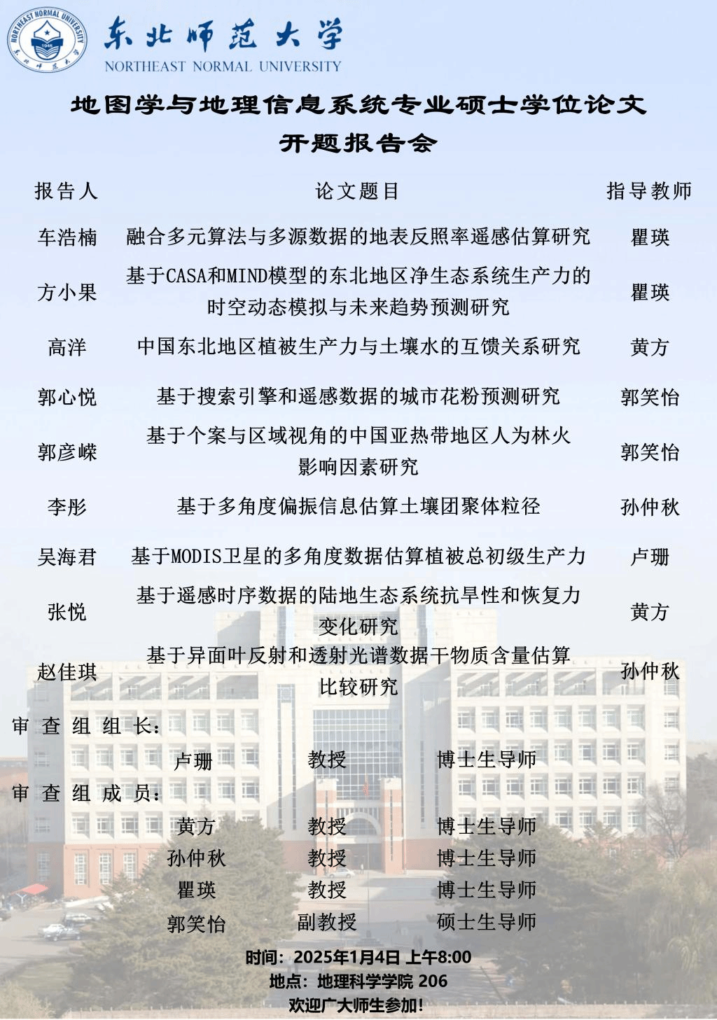 【硕博开题】地图学与地理信息系统专业硕士学位论文开题报告会