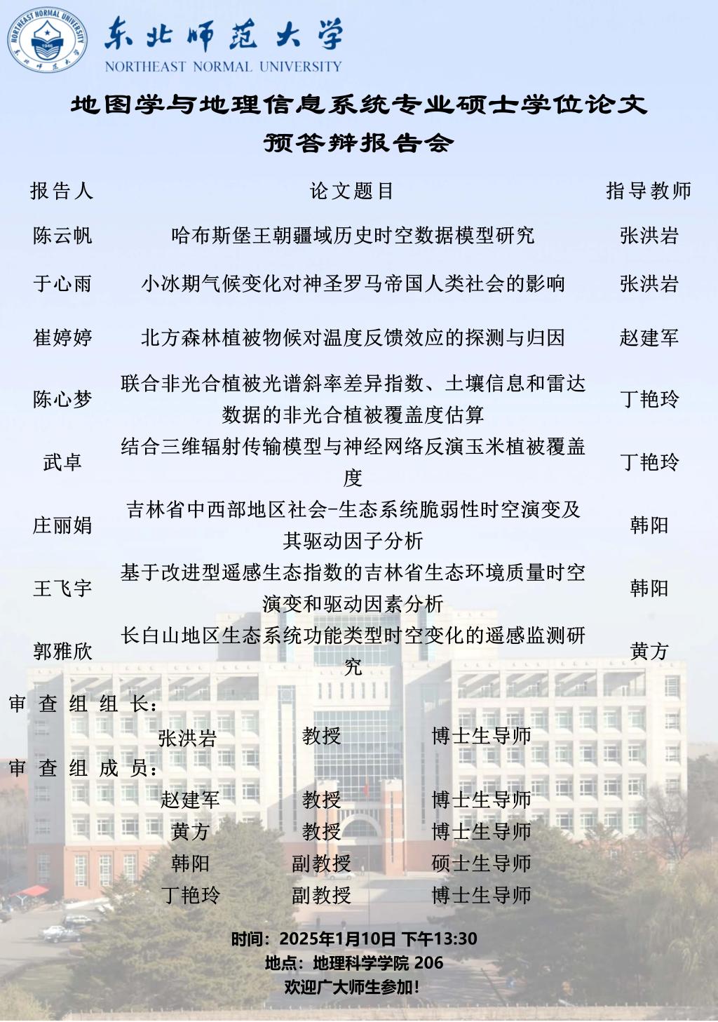 【硕博答辩】地图学与地理信息系统专业硕士学位论文预答辩报告会