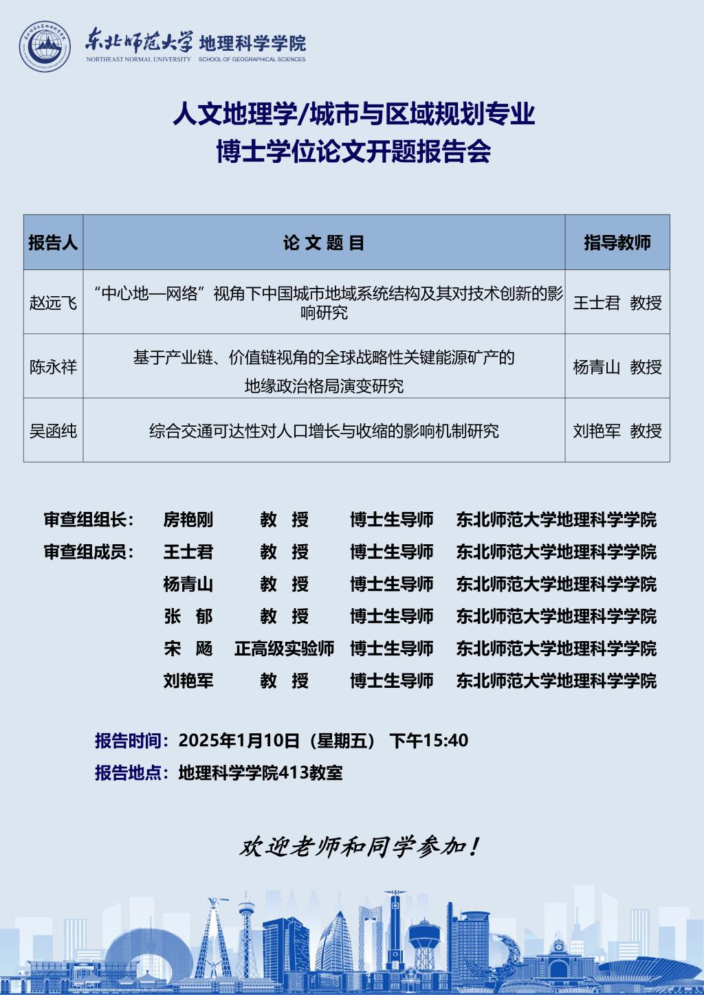【硕博开题】人文地理学/城市与区域规划专业博士学位论文开题报告会