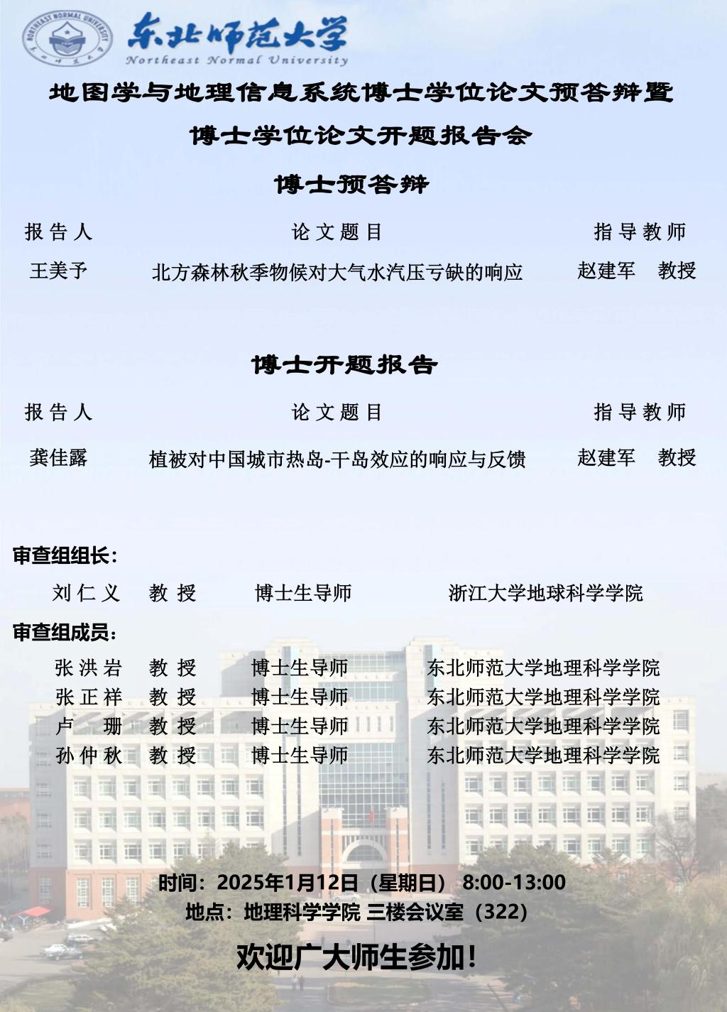 【硕博答辩】地图学与地理信息系统博士学位论文预答辩暨博士学位论文开题报告会