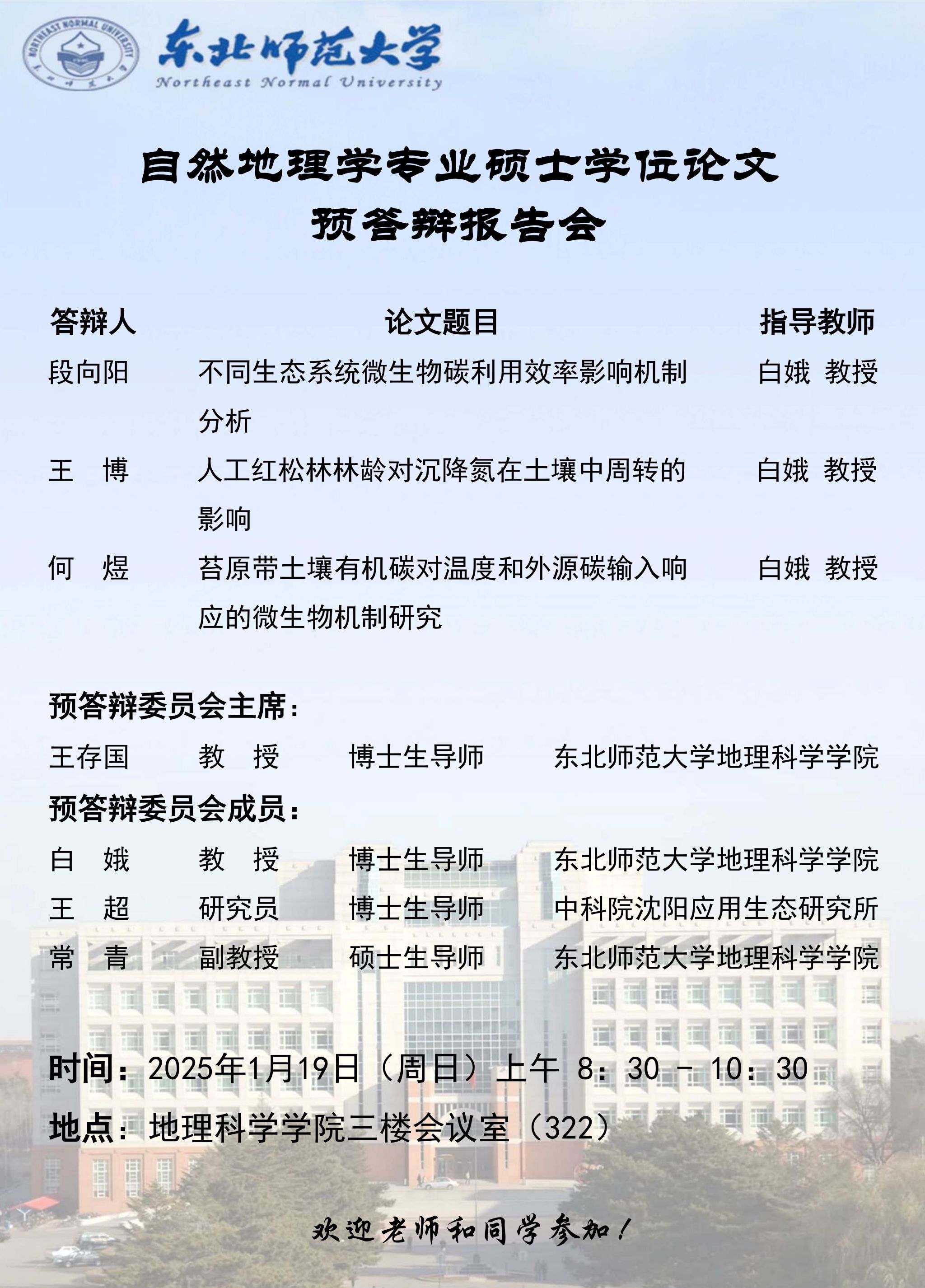 【硕博答辩】自然地理学专业硕士学位论文预答辩报告会