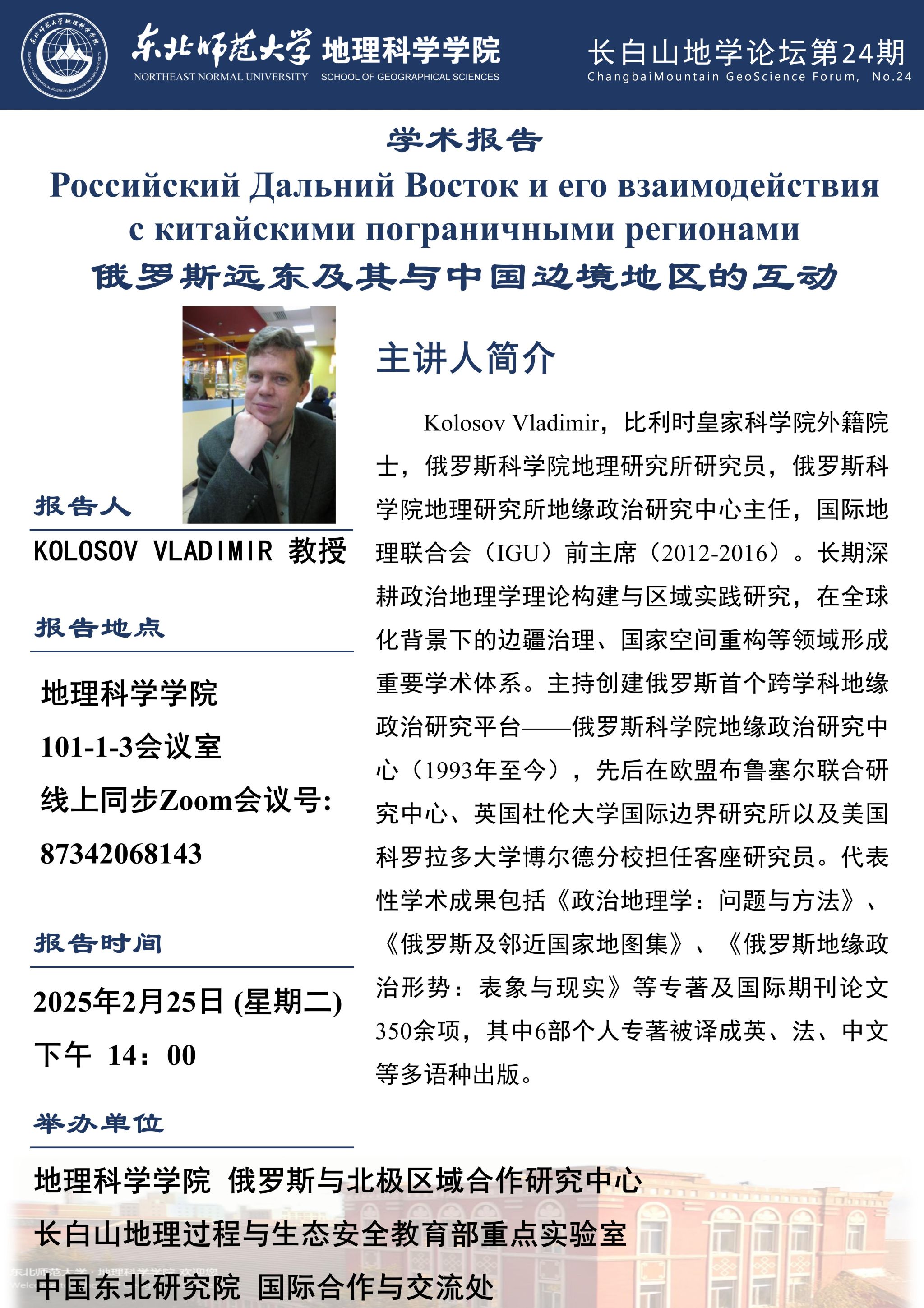 【长白山地学论坛(第二十四期)】Kolosov Vladimir:俄罗斯远东及其与中国边境地区的互动