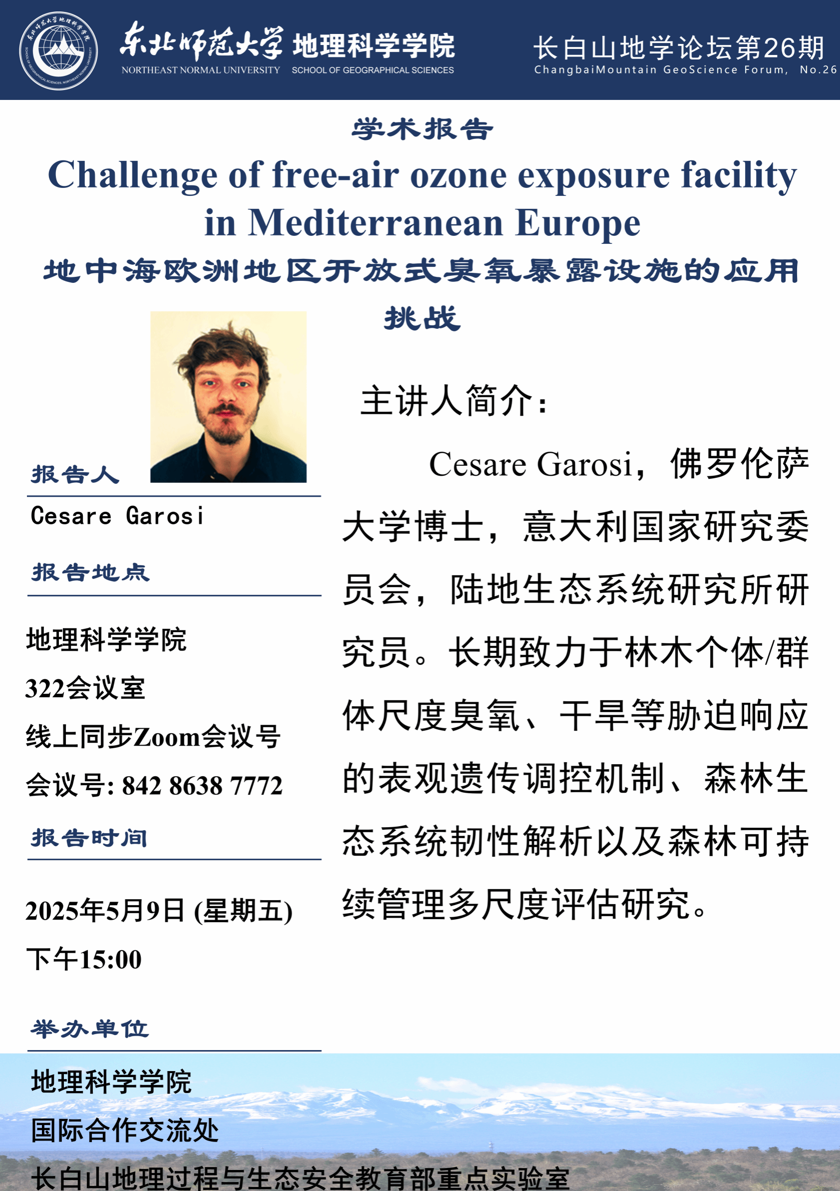 【长白山地学论坛(第二十六期)】Cesare Garosi:Challenge of free-air ozone exposure facility in Mediterranean Europe