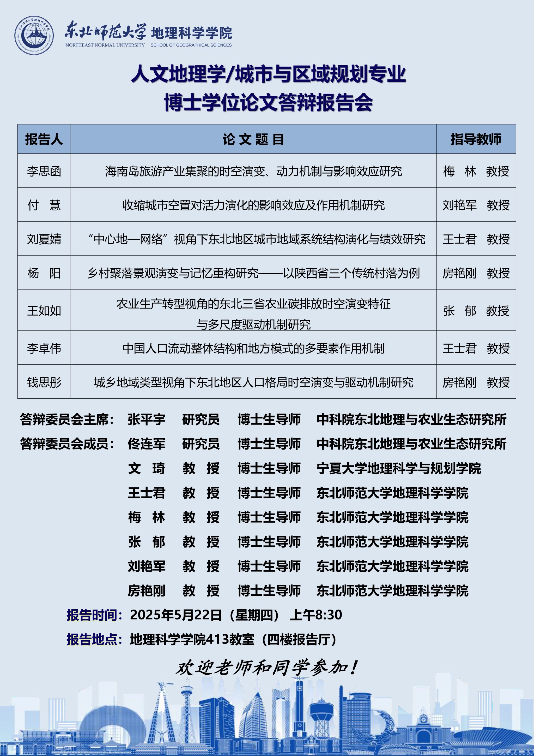 【硕博答辩】人文地理学/城市与区域规划专业博士学位论文答辩报告会