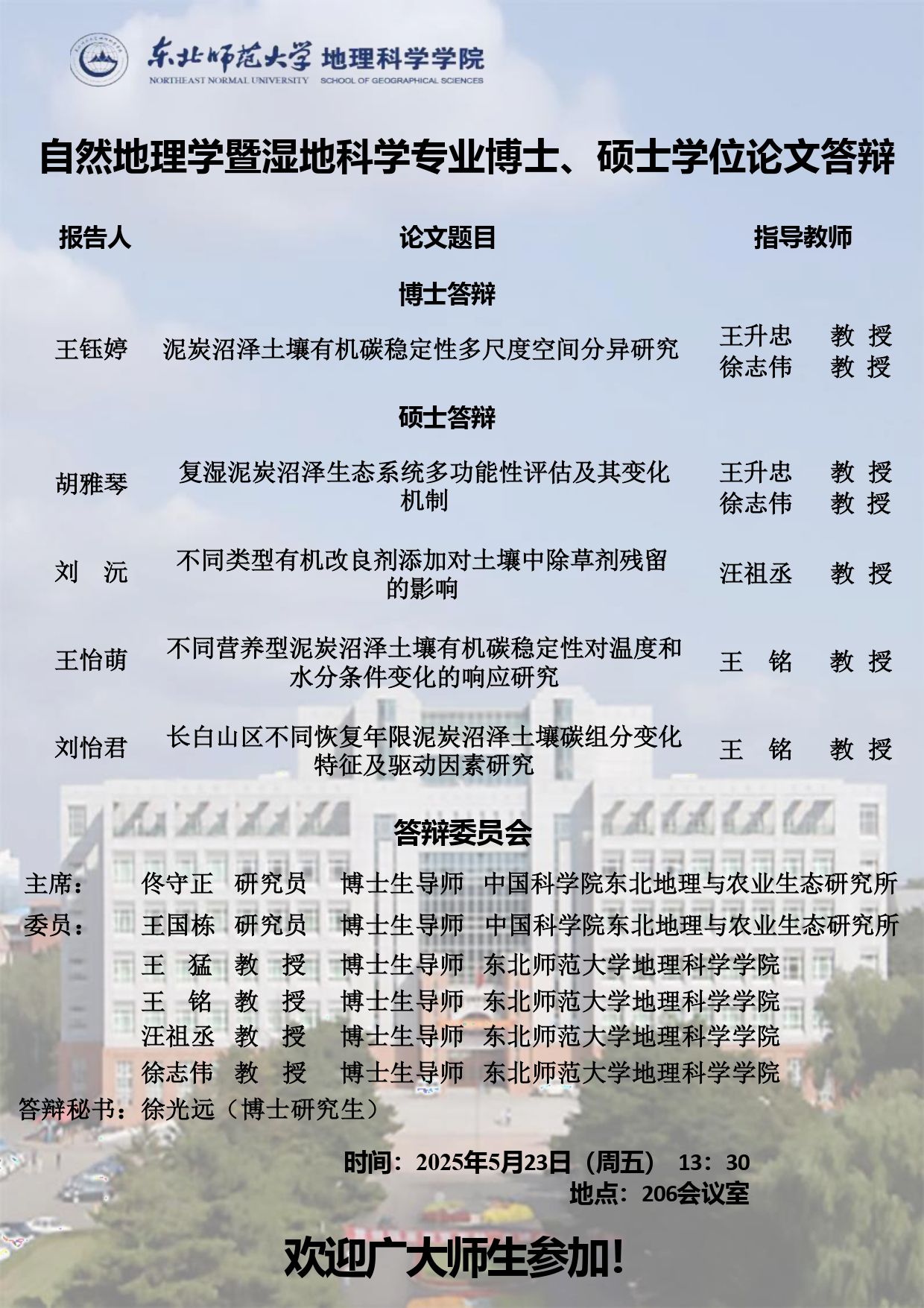 【硕博答辩】自然地理学暨湿地科学专业博士、硕士学位论文答辩
