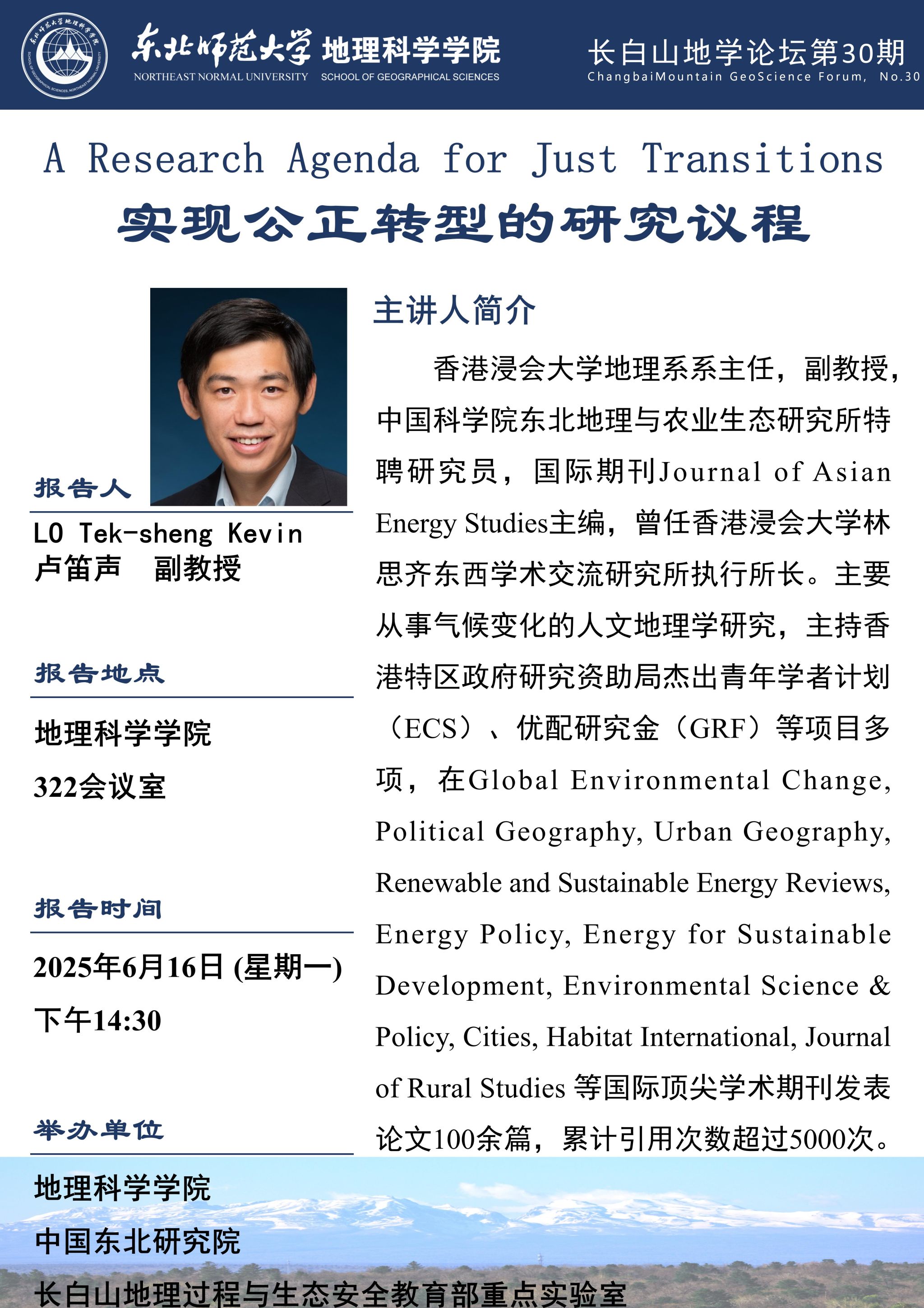 【长白山地学论坛(第三十期)】芦笛声:实现公正转型的研究议程