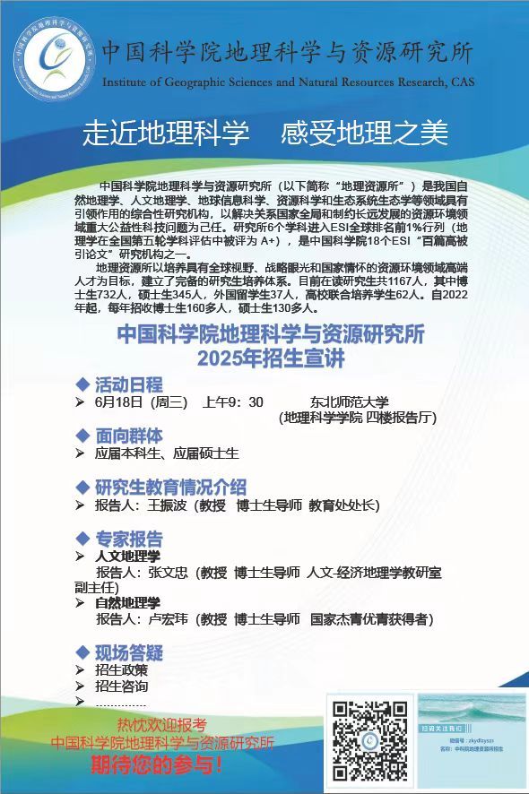 【招生宣讲】“走进地理学科 感受地理之美”中国科学院地理科学与资源研究所2025年招生宣讲