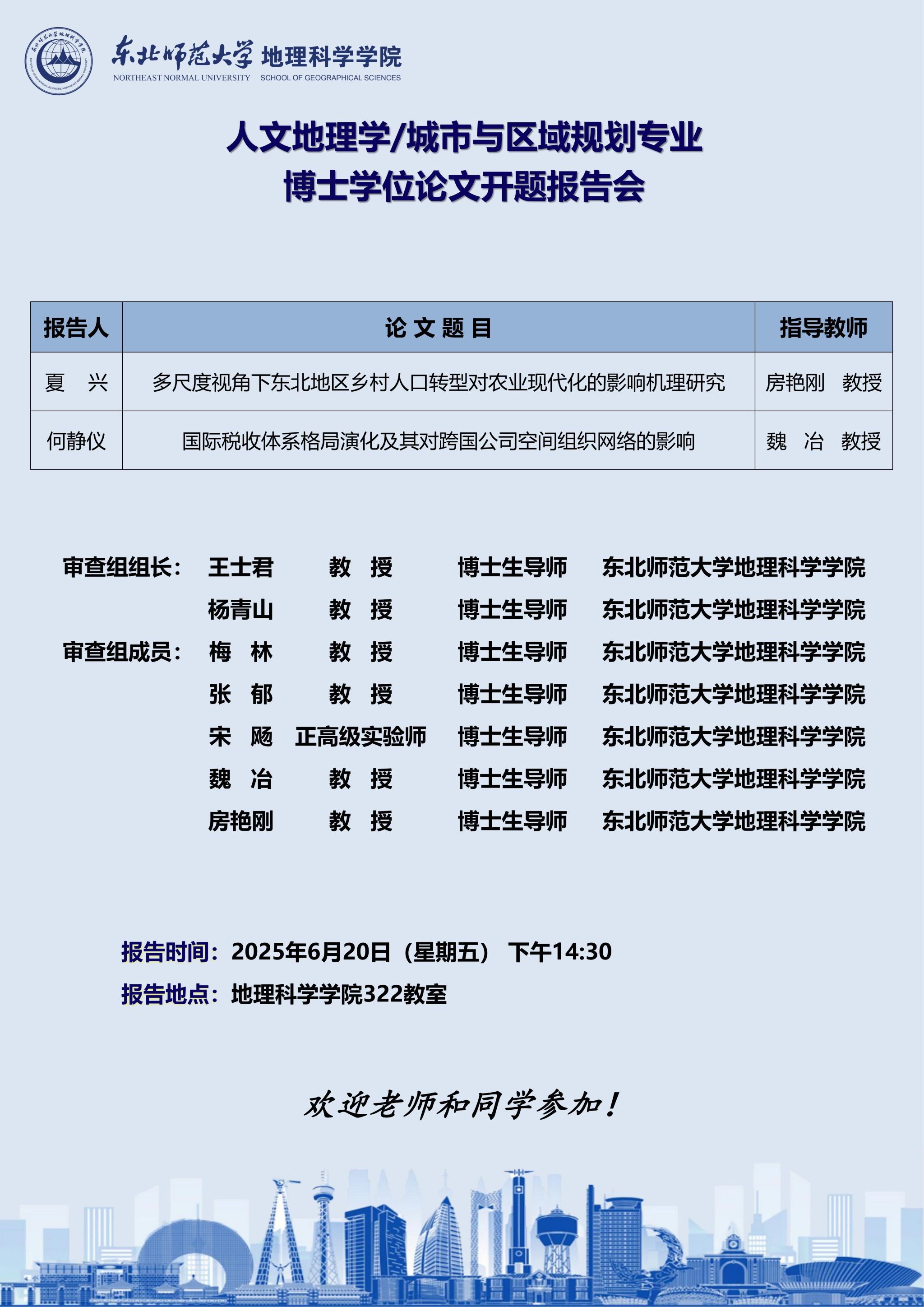 【硕博开题】人文地理学/城市与区域规划专业博士学位论文开题报告会