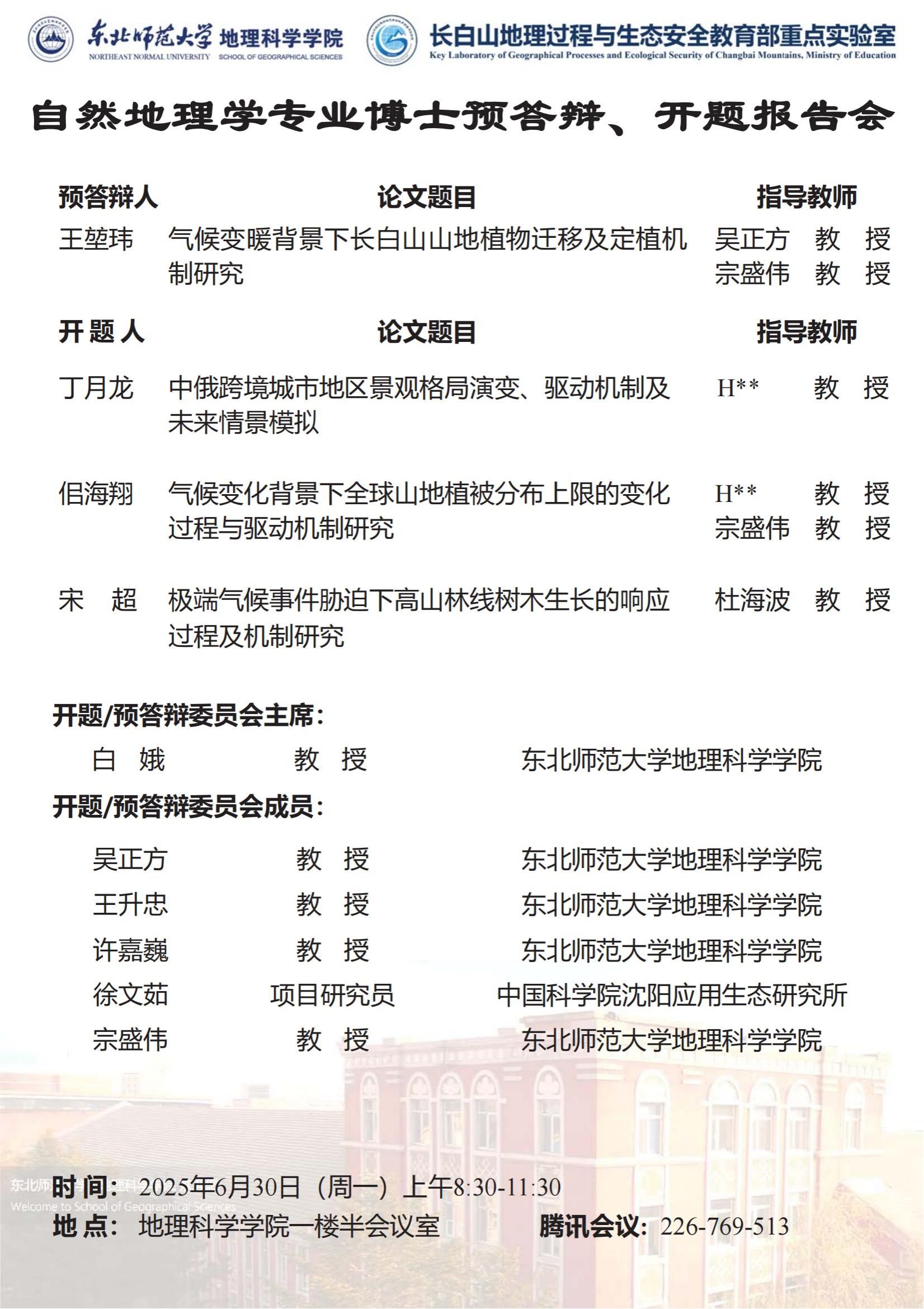 【硕博答辩】自然地理学专业博士预答辩、开题报告会