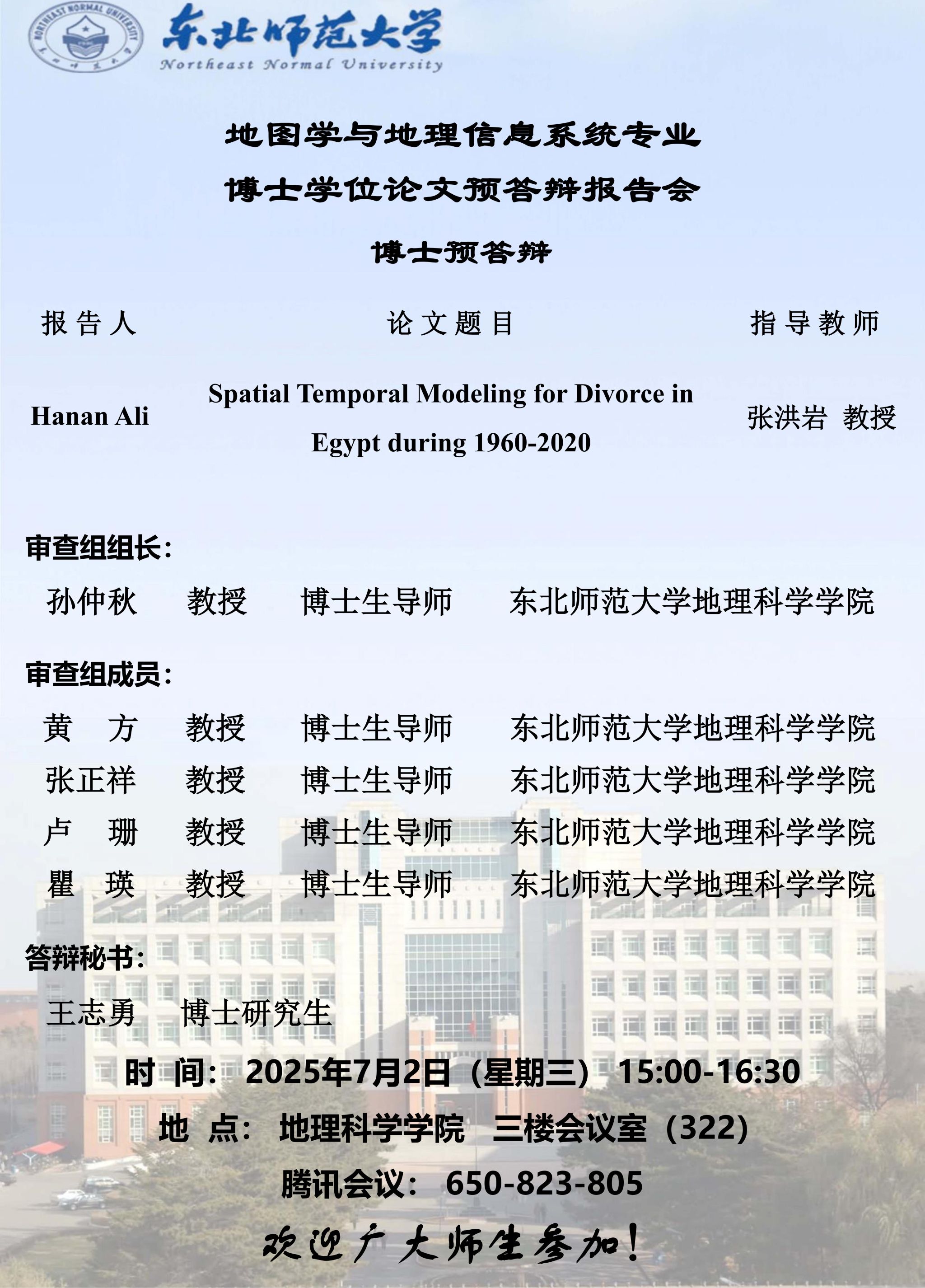 【硕博答辩】地图学与地理信息系统专业博士学位论文预答辩报告会