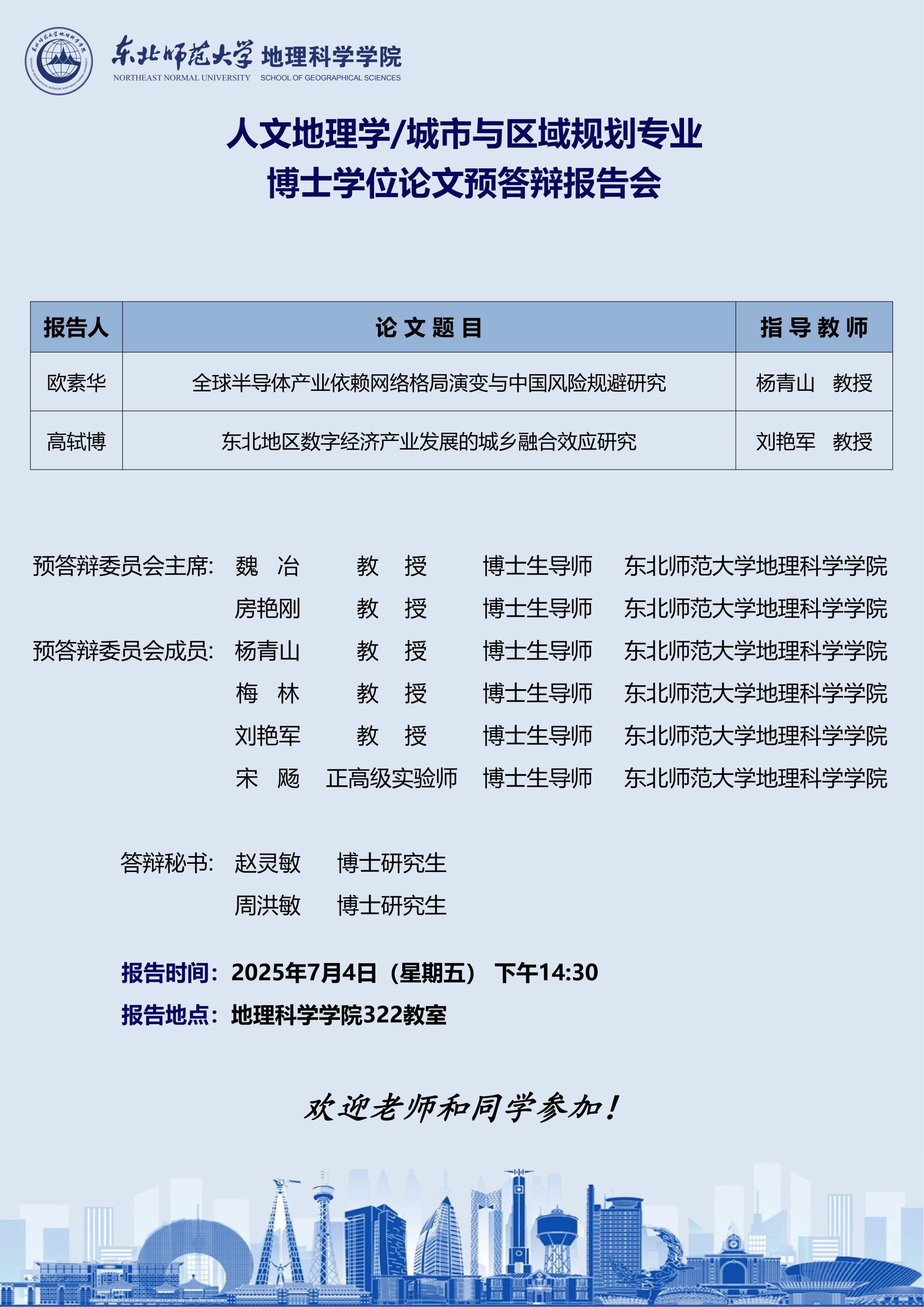 【硕博答辩】人文地理学/城区与区域规划专业博士学位论文答辩报告会