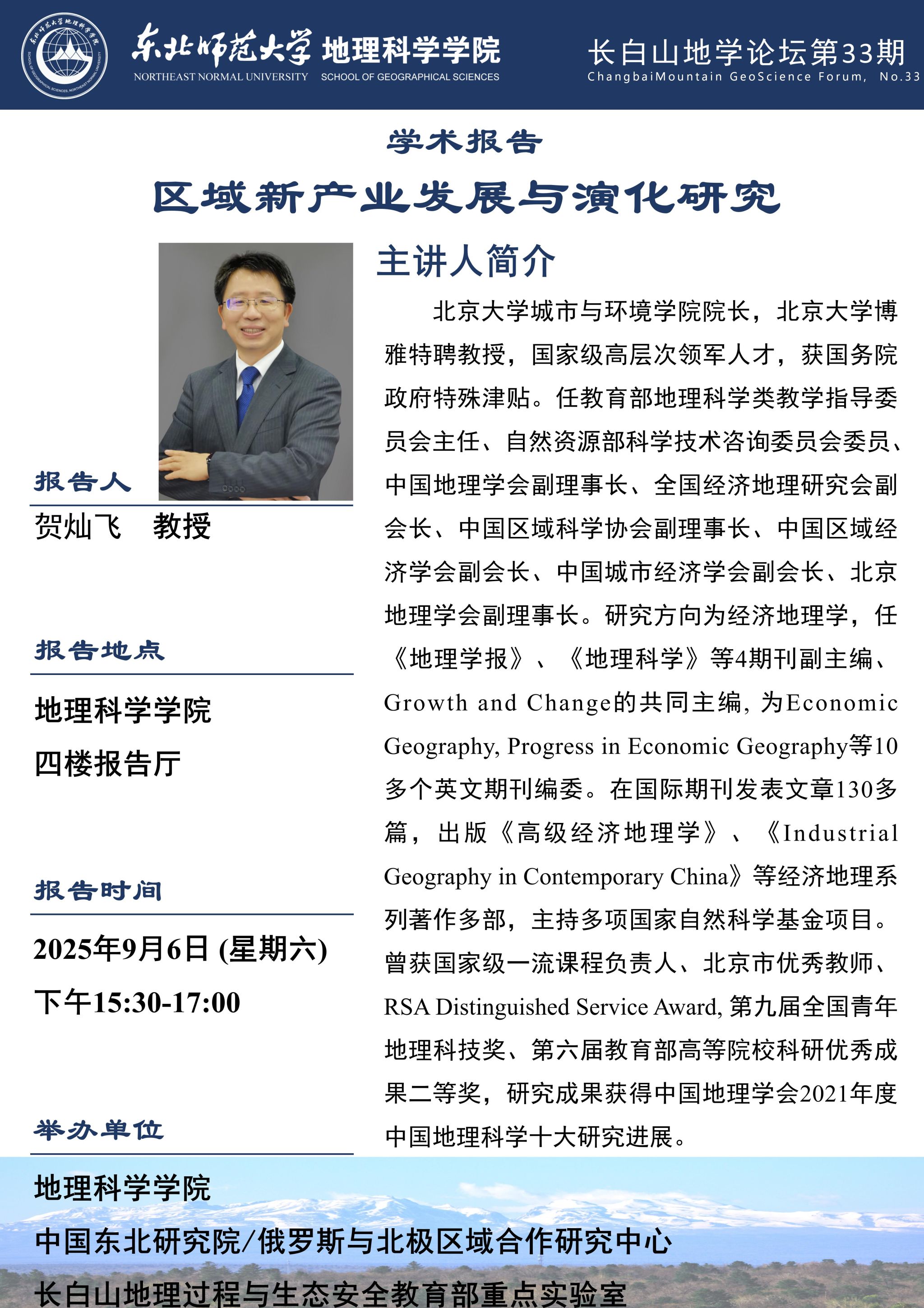 【长白山地学论坛(第三十三期)】贺灿飞:区域新产业发展与演化研究