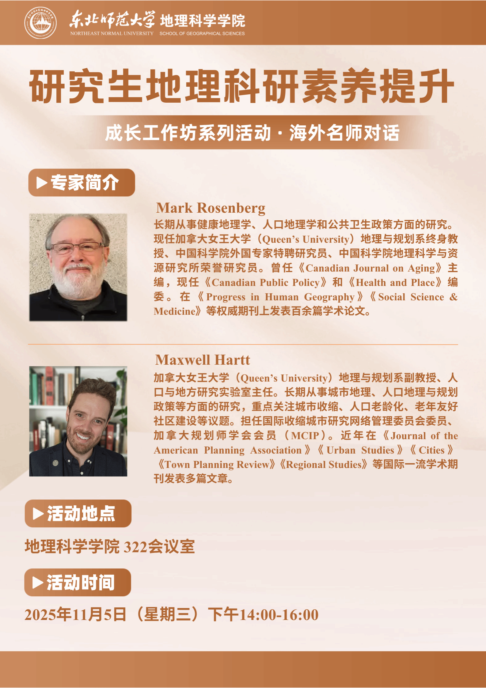 【成长工作坊 · 海外名师对话】Mark Rosenberg; Maxwell Hartt:研究生地理科研素养提升