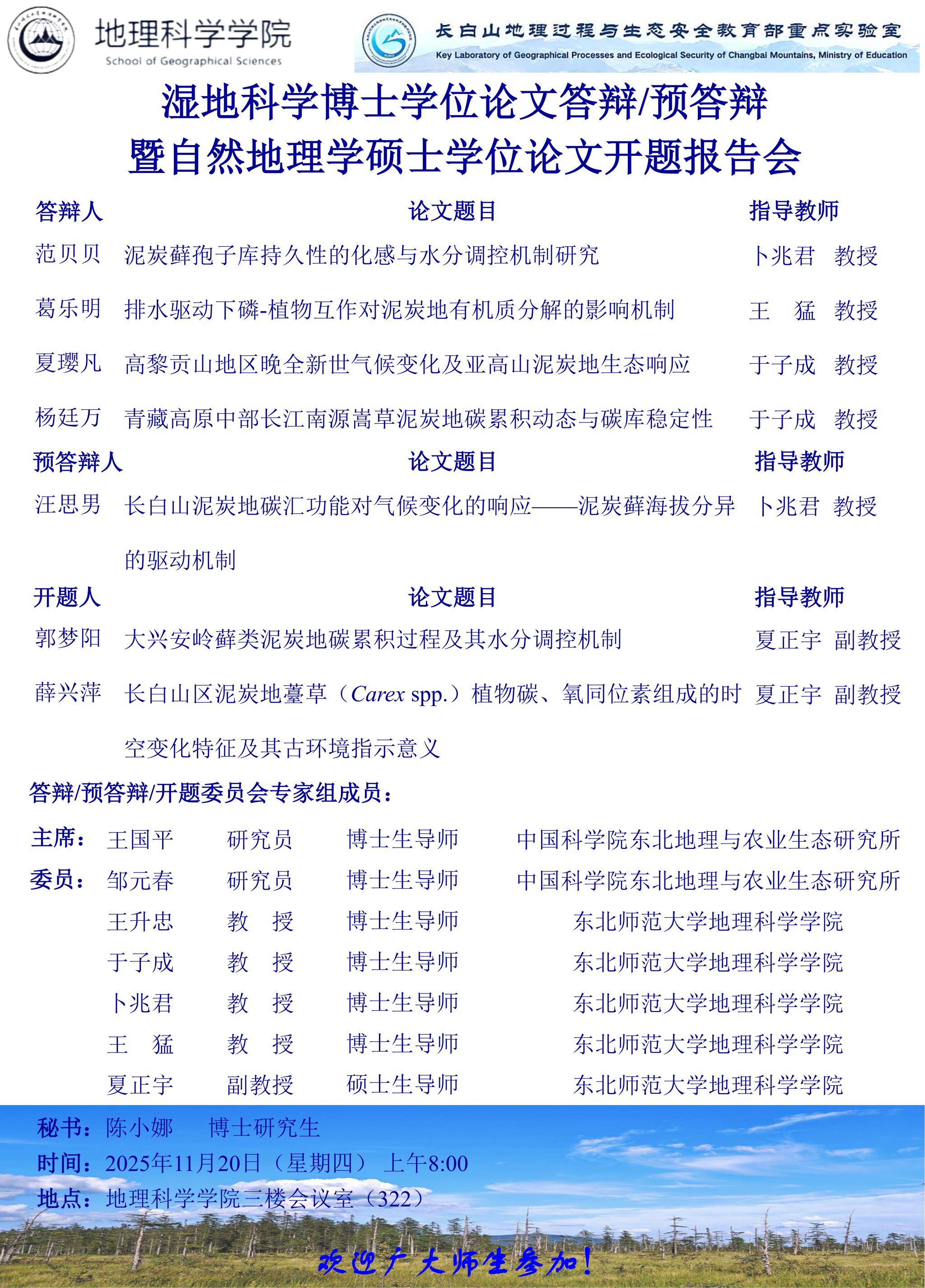 【硕博答辩】湿地科学博士学位论文答辩/预答辩暨自然地理学硕士学位论文开题报告会