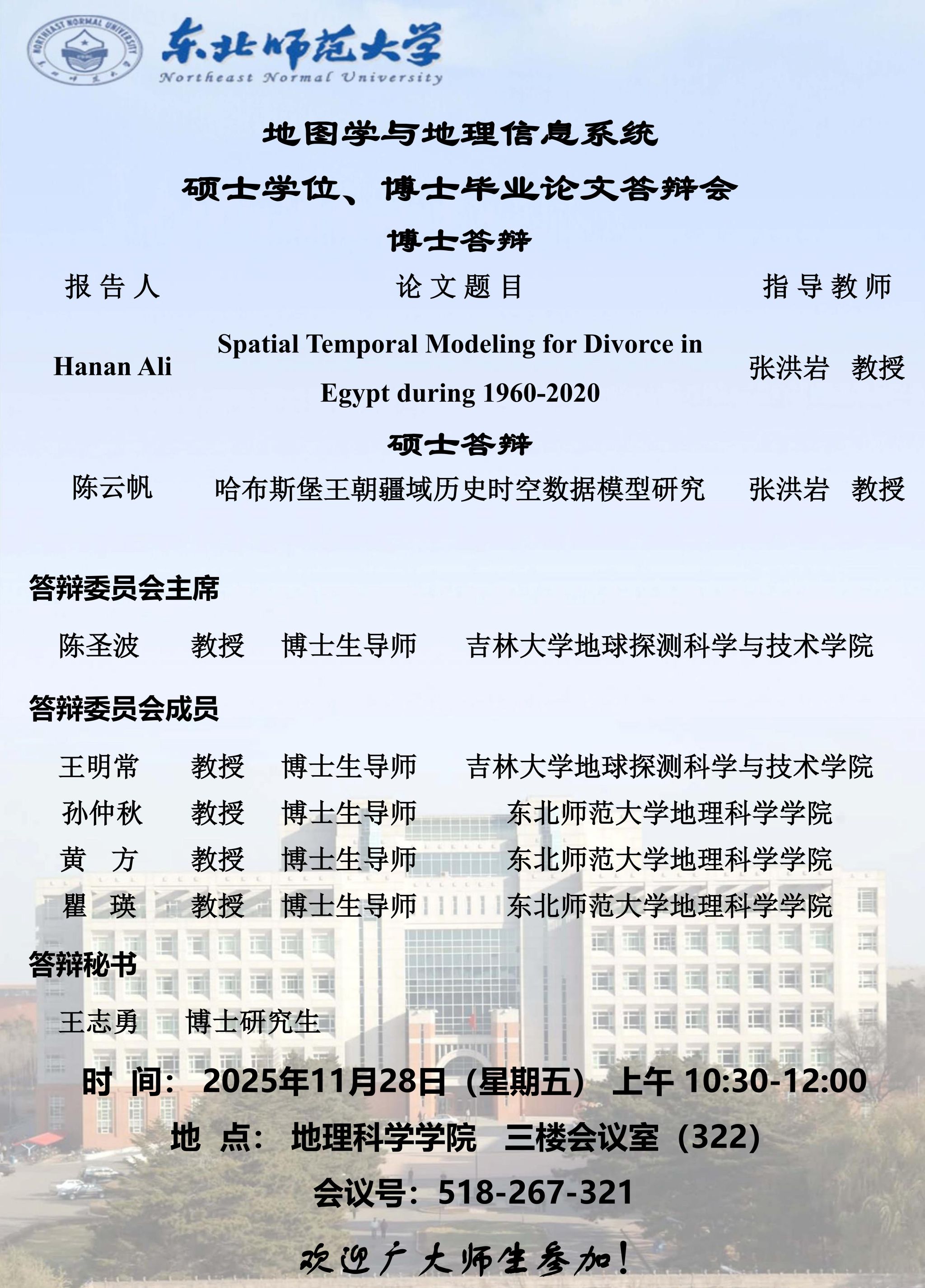 【硕博答辩】地图学与地理信息系统专业硕士学位、博士毕业论文答辩会