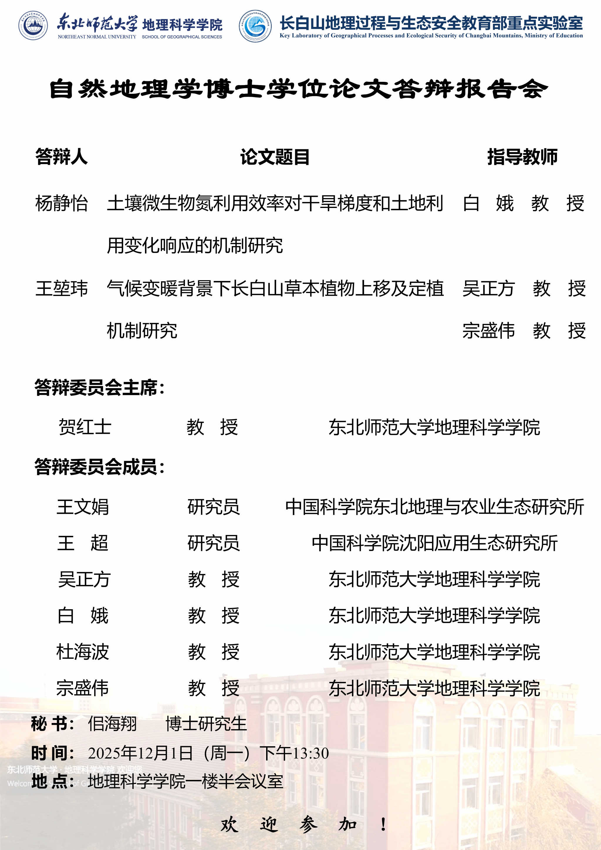 【硕博答辩】自然地理学博士学位论文答辩报告会
