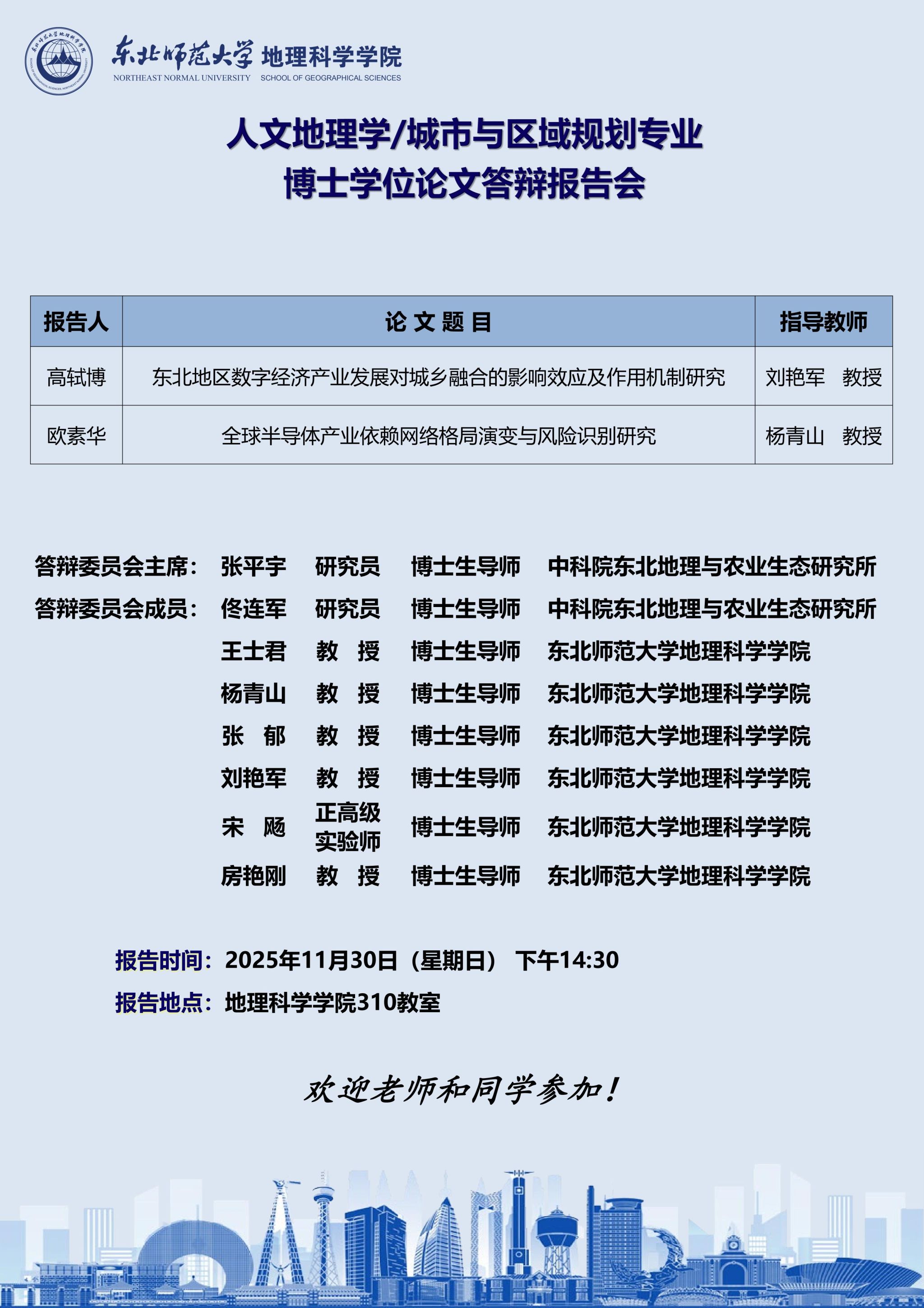 【硕博答辩】人文地理学/城市与区域规划专业博士学位论文答辩报告会
