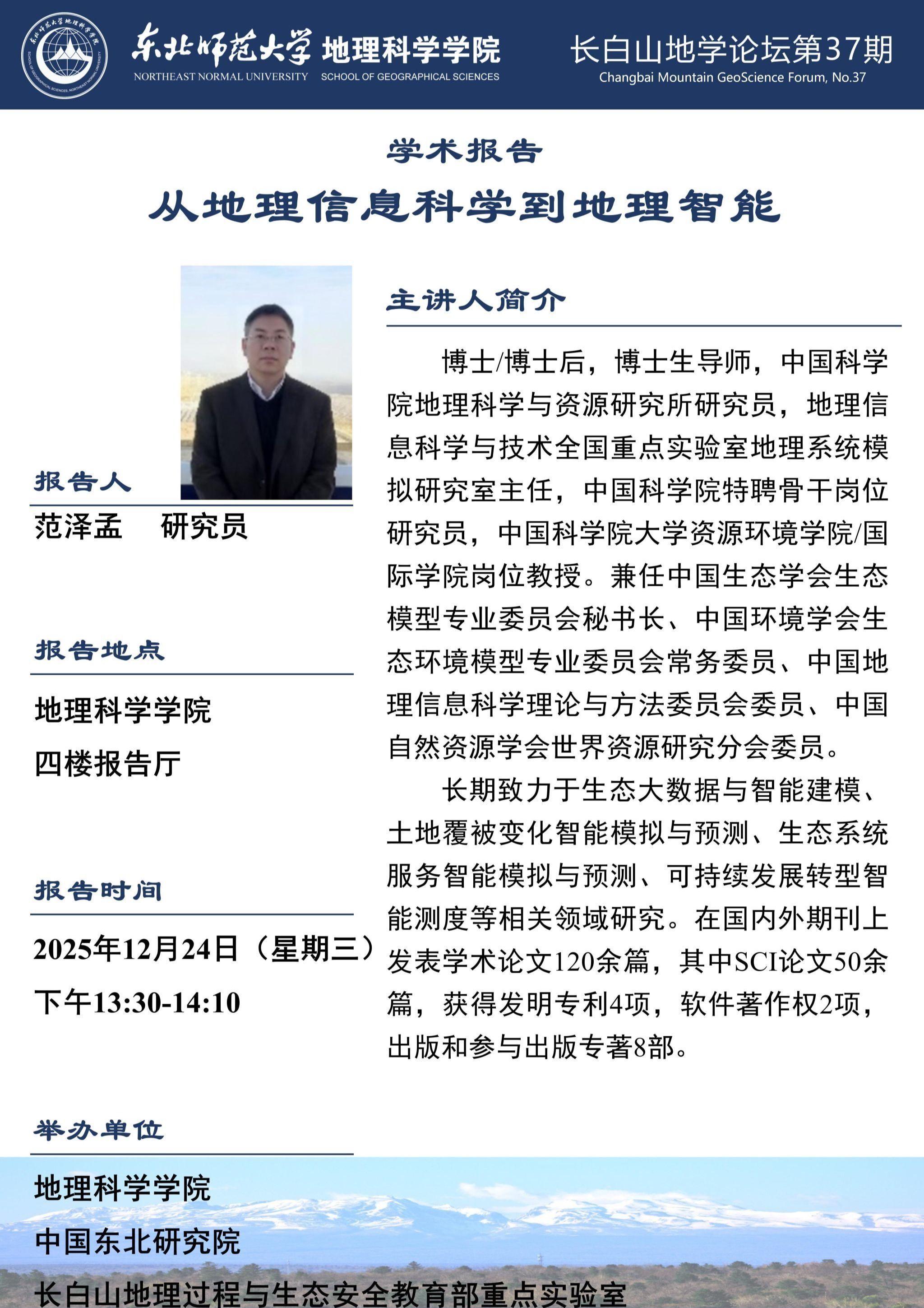 【长白山地学论坛(第三十七期)】范泽孟:从地理信息科学到地理智能