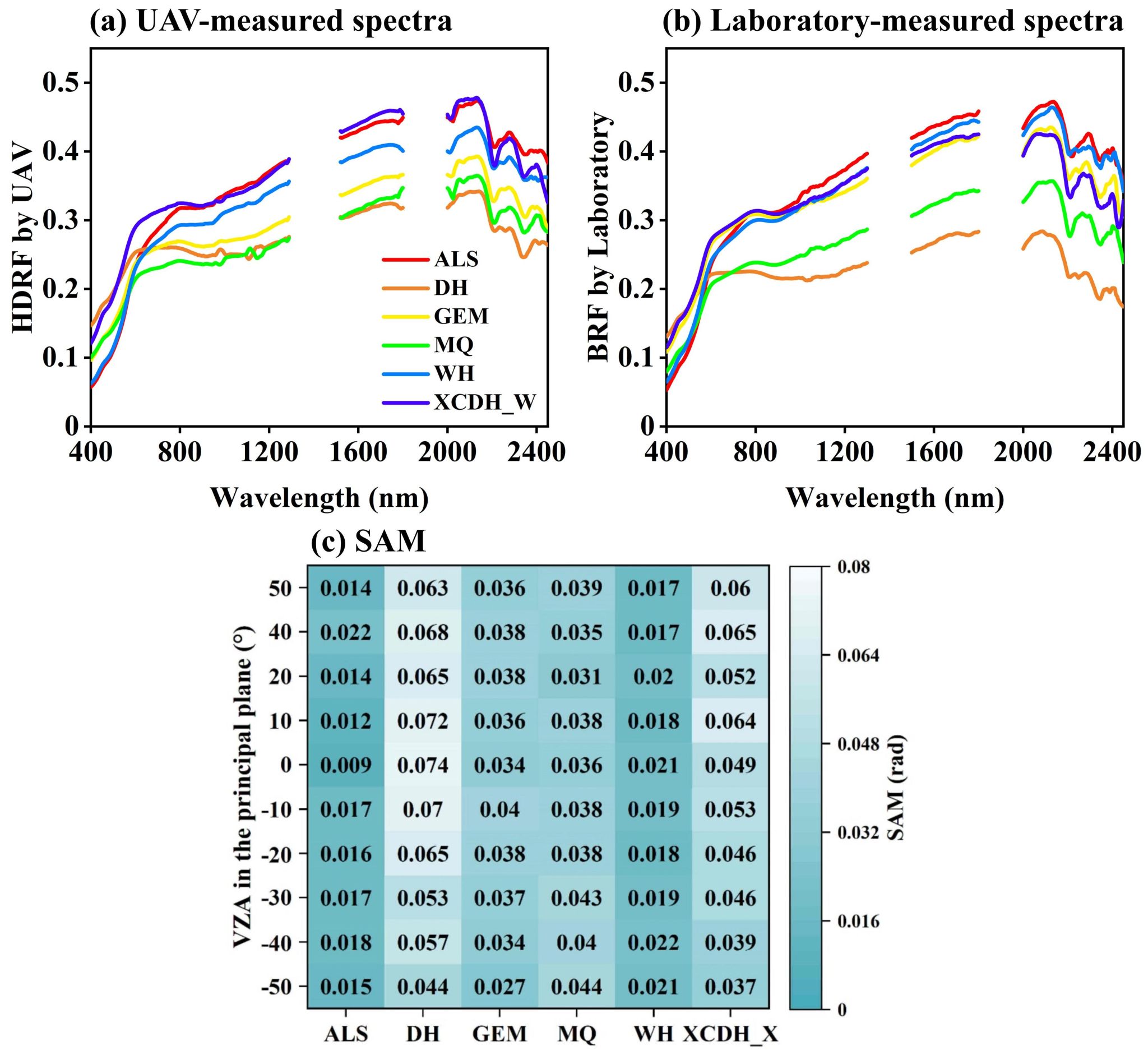 图4 无人机与实验室测量的光谱反射特性比较