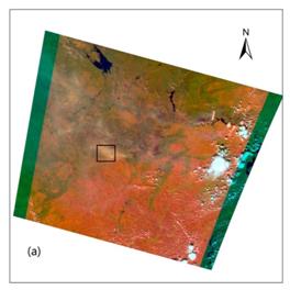 以2010年夏季俄罗斯西部重大森林火灾为研究对象,文章第一次用遥感数据估算了森林火灾的CO2排放量。我们通过GOSAT CAI数据对烟雾范围进行了识别,并得到了较好效果(图1)。