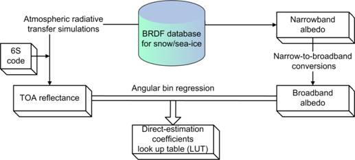 图1 海冰反照率直接反演系数查找表生成流程图